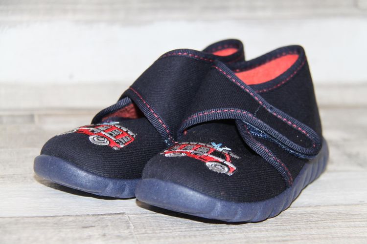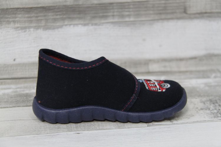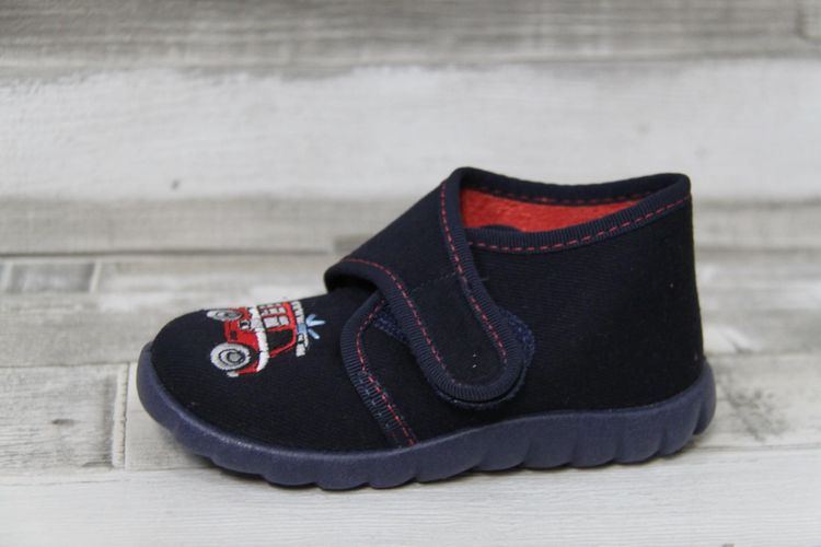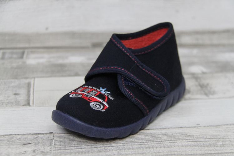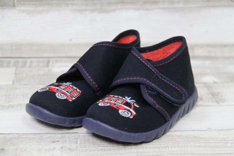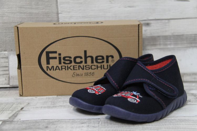 Fischer Jungen Klett-Hausschuh dunkelblau mit Feuerwehr