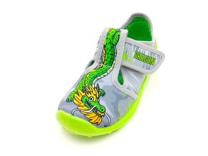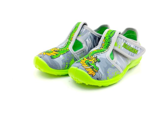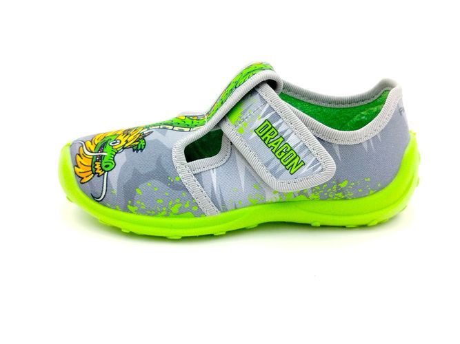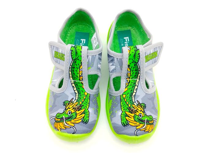 Fischer Jungen Kletthausschuh Drachen grau grün