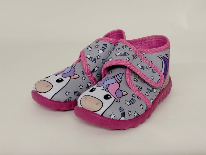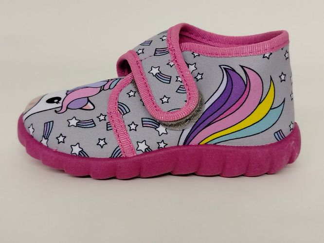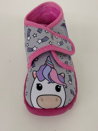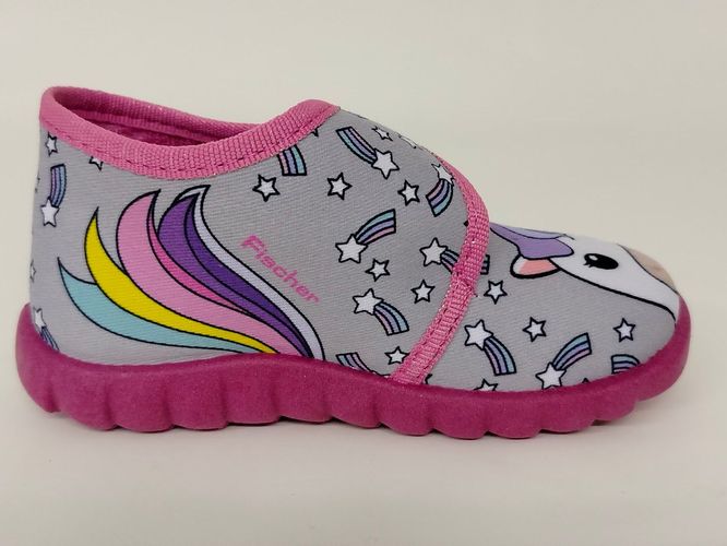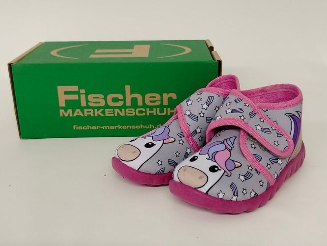 Fischer Mädchen Hausschuh mit Einhorn und Klettverschluss grau bunt