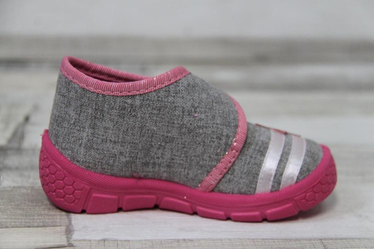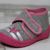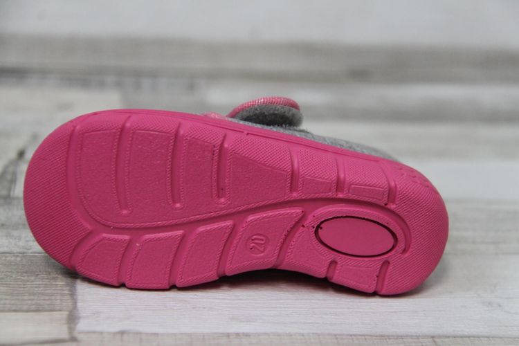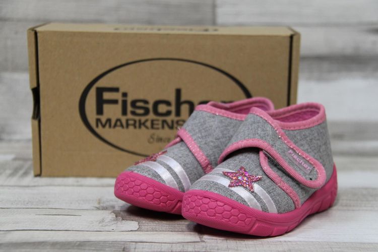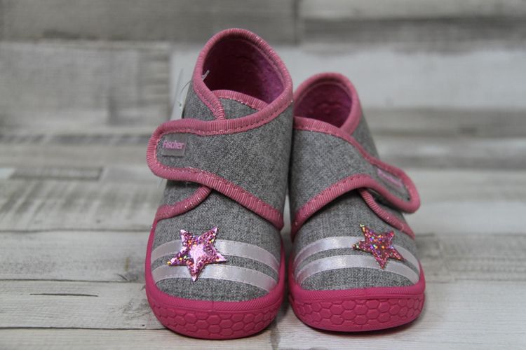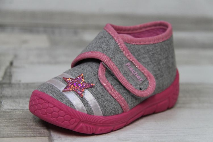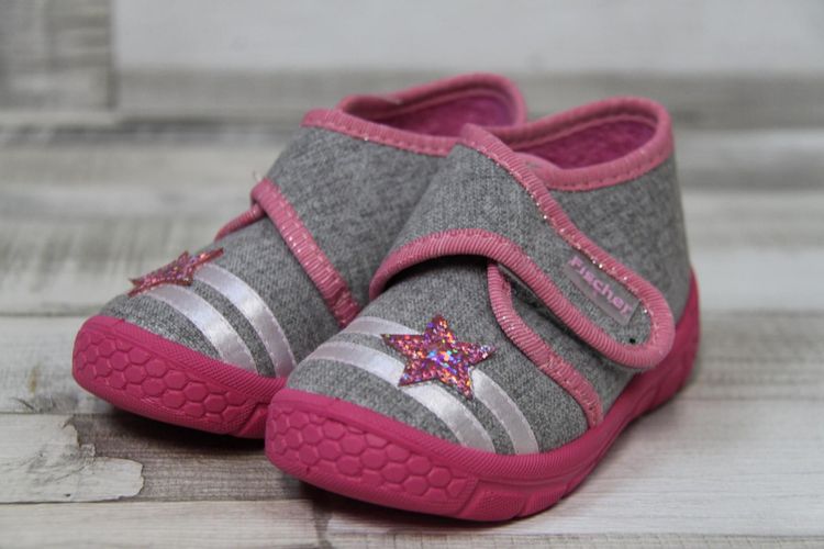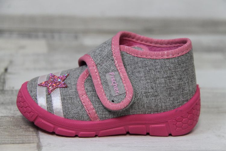Fischer Mädchen Klett-Hausschuh hellgrau mit rosa Glitzerstern
