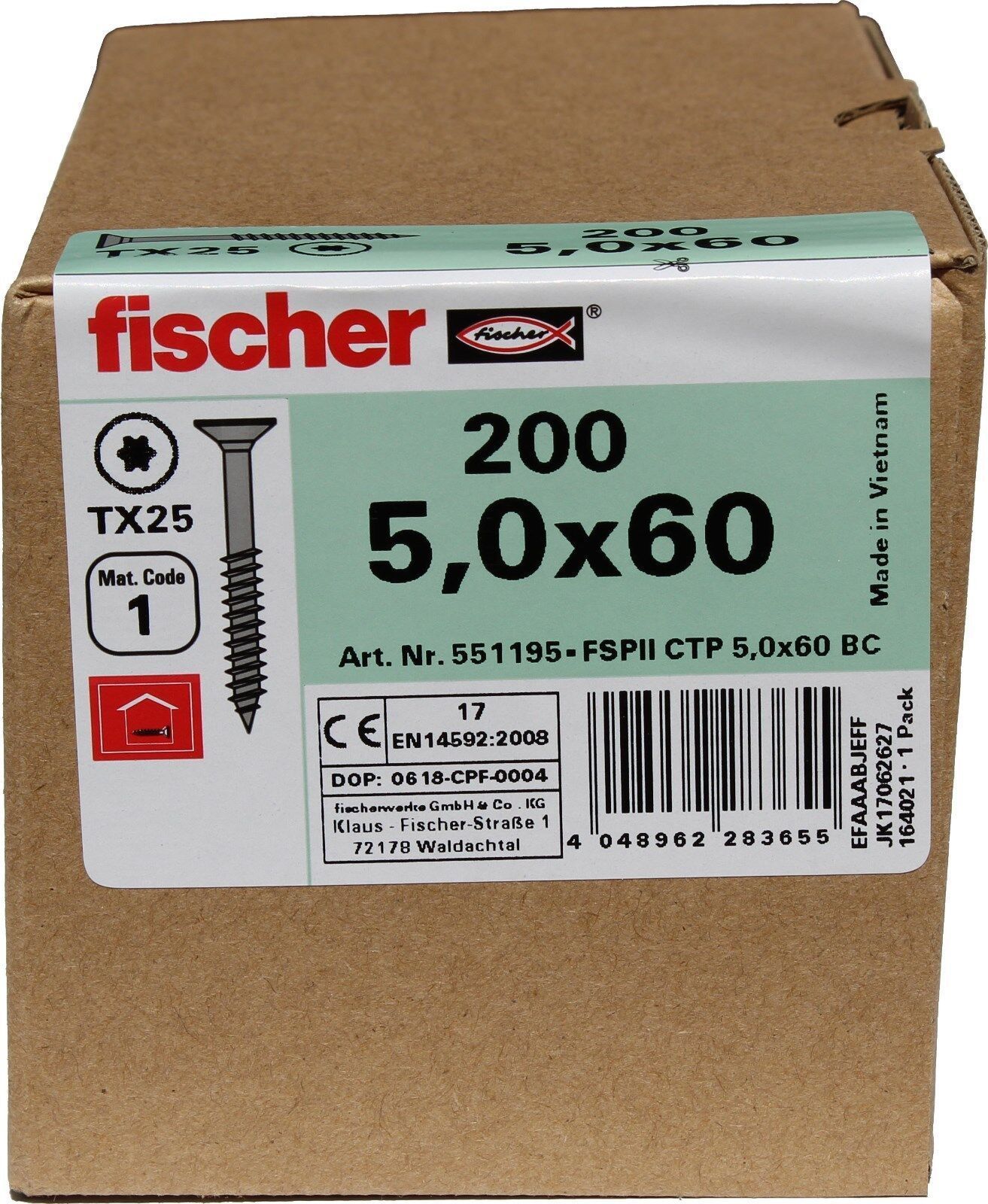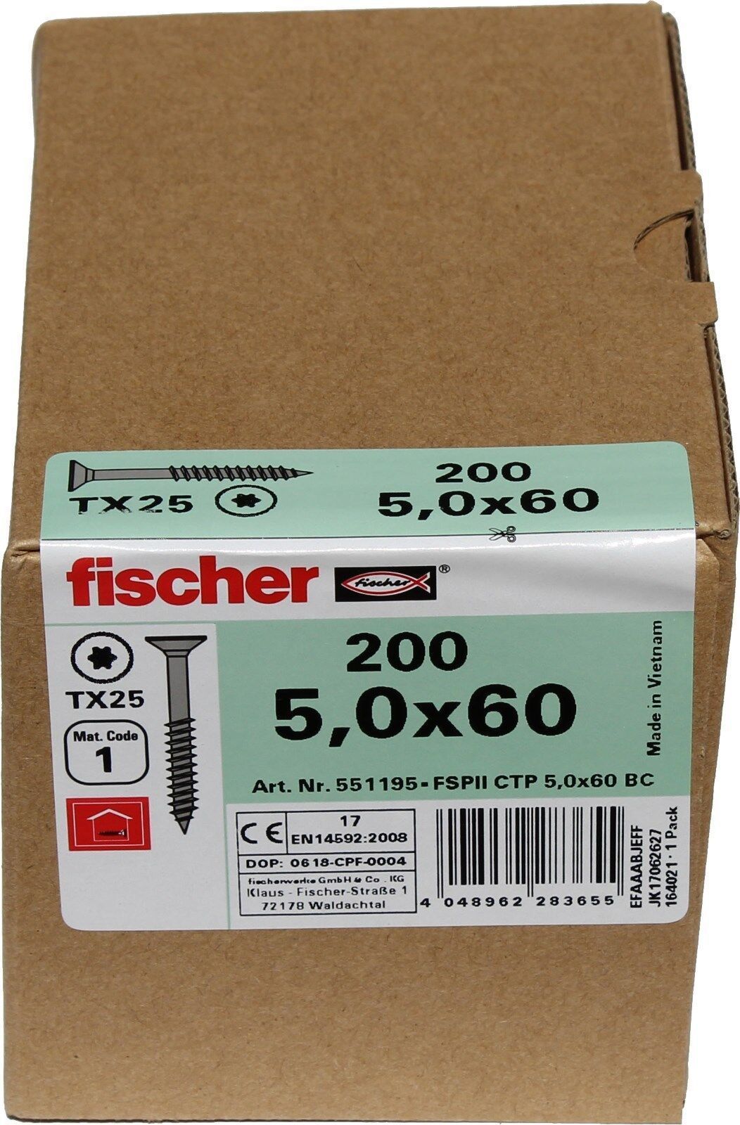 Fischer Spanplattenschraube Classic-Fast 5,0x60mm 200 St. TORX Teilgewinde