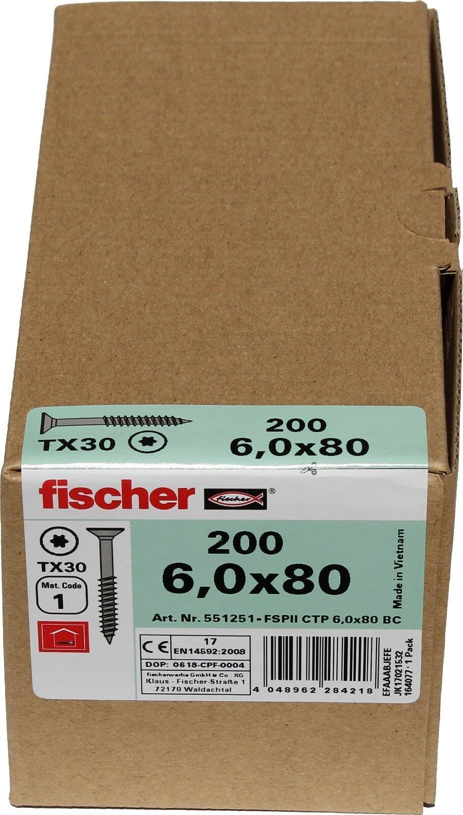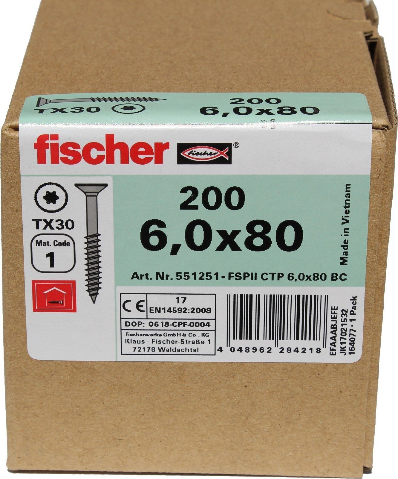 Fischer Spanplattenschraube Classic-Fast 6,0x80mm 200 St. TORX Teilgewinde