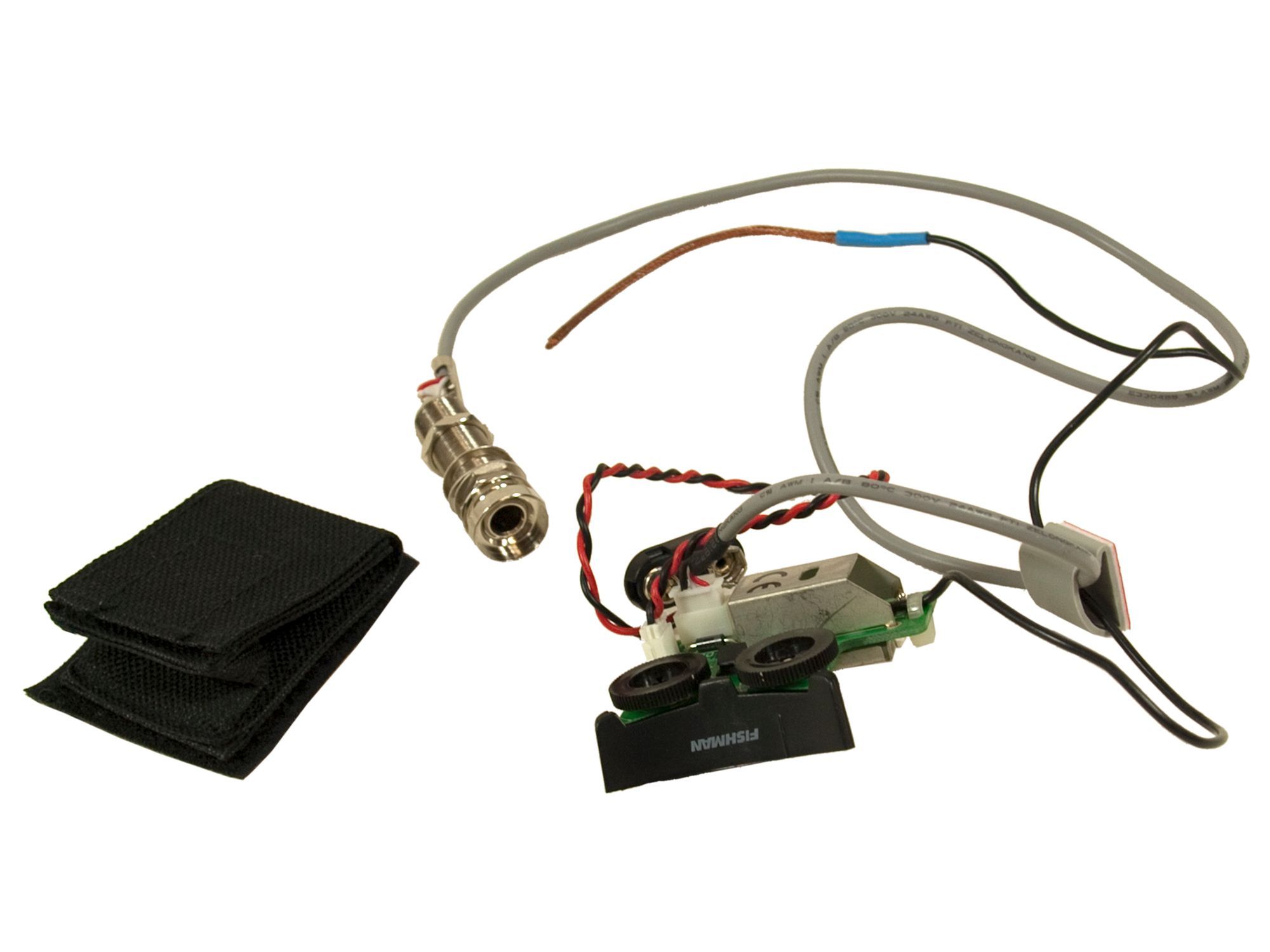 Fishman Sonitone SON-GT2 Pickup Undersaddle Pickup Länge des Transducers (Kupferumwickelt): 8,5 cm Batterietasche mit Klett für Montage im Korpus (SON-GT2) Reglereinheit wird mit beidseitigem Klebeband unterm Schalllochrand befestigt Keine Lötarbeiten nötig Wegen der geringen Ausmaße auch für kleine