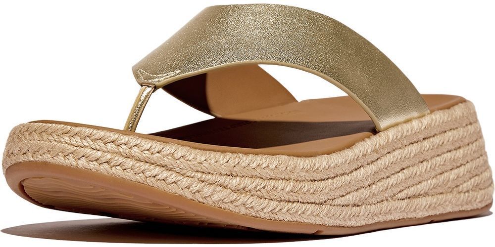 FitFlop Damen Flip Flops F-Mode Espadrille Leather Flatform T/Post Sandals IV6