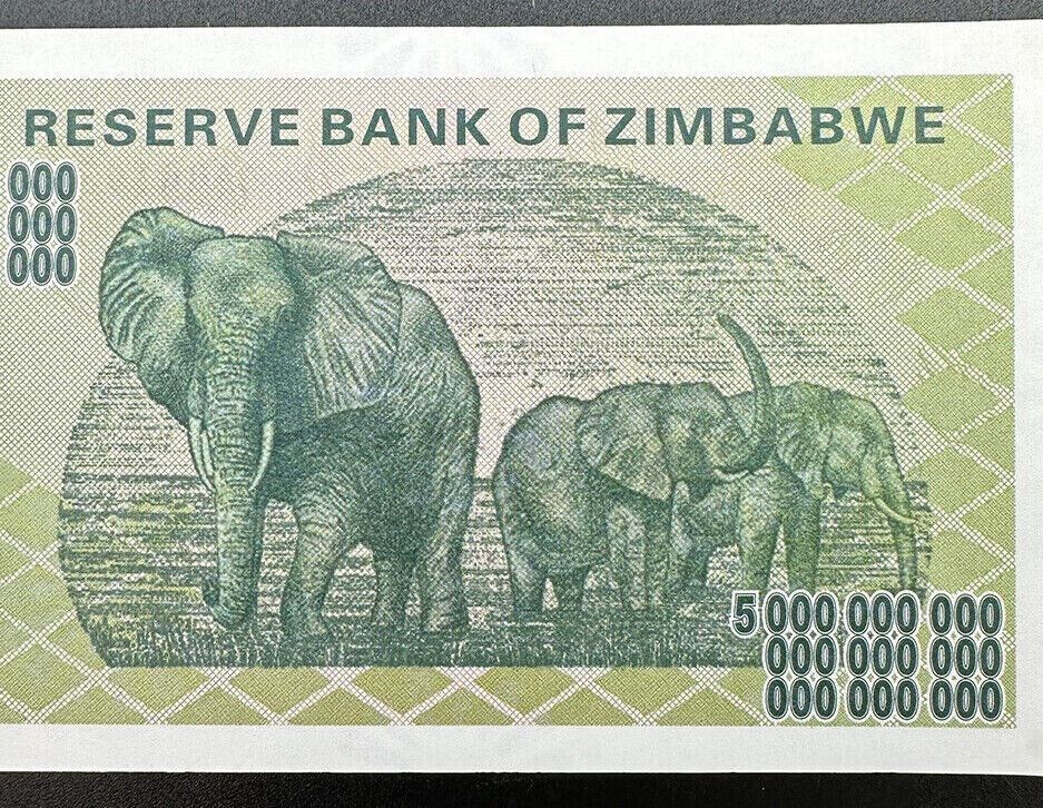 Diese Auflistung ist für eine extra feine Five Octillion Dollars Simbabwe Diese Simbabwe Note war ein Teil der Serie Inflationswährung. Die Scheine haben unterschiedliche Seriennummern und gelten nur als Fantasy Banknoten weil sie zu keiner Zeit im Handel waren!!! Mehr als ein Jahrzehnt nach ihrer E