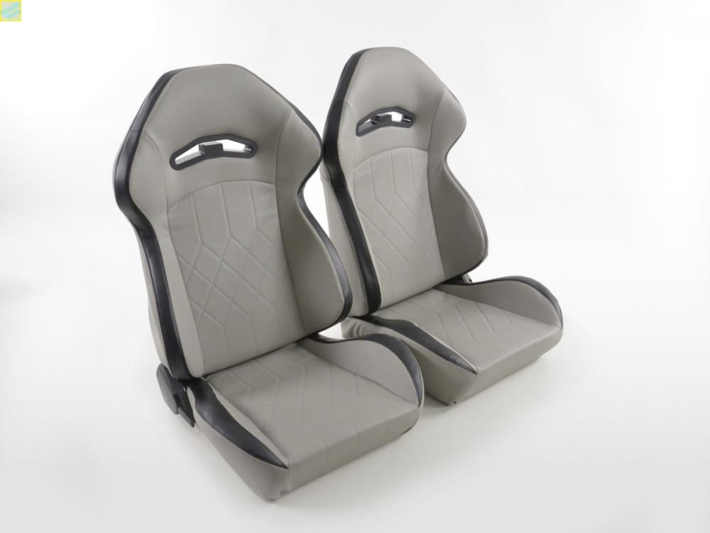 FK Sportsitze Auto Halbschalensitze Set Kunstleder grau Naht schwarz