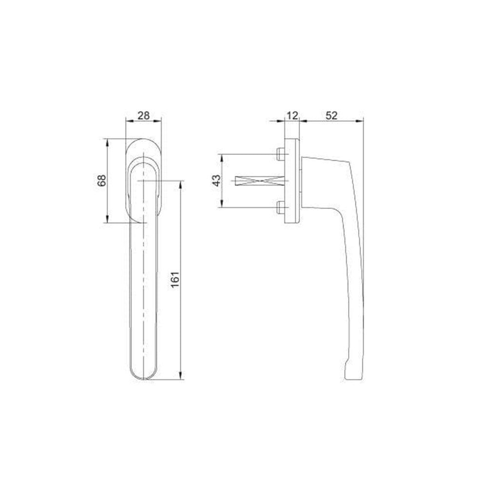 FKS Fenstergriff für Schiebekippelemente Rasterung 45° oder 90° PSK-Aluminium-Griff mit ovaler Zamak-Rosette Stiftlänge 40mm PSK Rasterung 45° oder 90° Abdeckkappe in der Grifffarbe und verdeckter Verschraubung Vierkantstift Nockendurschmesser 10mm Lieferumfang: 1 Stück mit Befestigungsmaterial