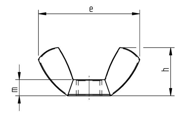 Flügelmuttern galvanisch verzinkt DIN 315 Muttern M4 M5 M6 M8 amerikanische Form Genaue Maßangaben können sie der Tabelle entnehmen (siehe Bilder). leicht konische Außenkontur, an die radial zwei flache Erweiterungen – die Flügel – angesetzt sind ohne Werkzeug zwischen Daumen und Zeigefinger (von Ha