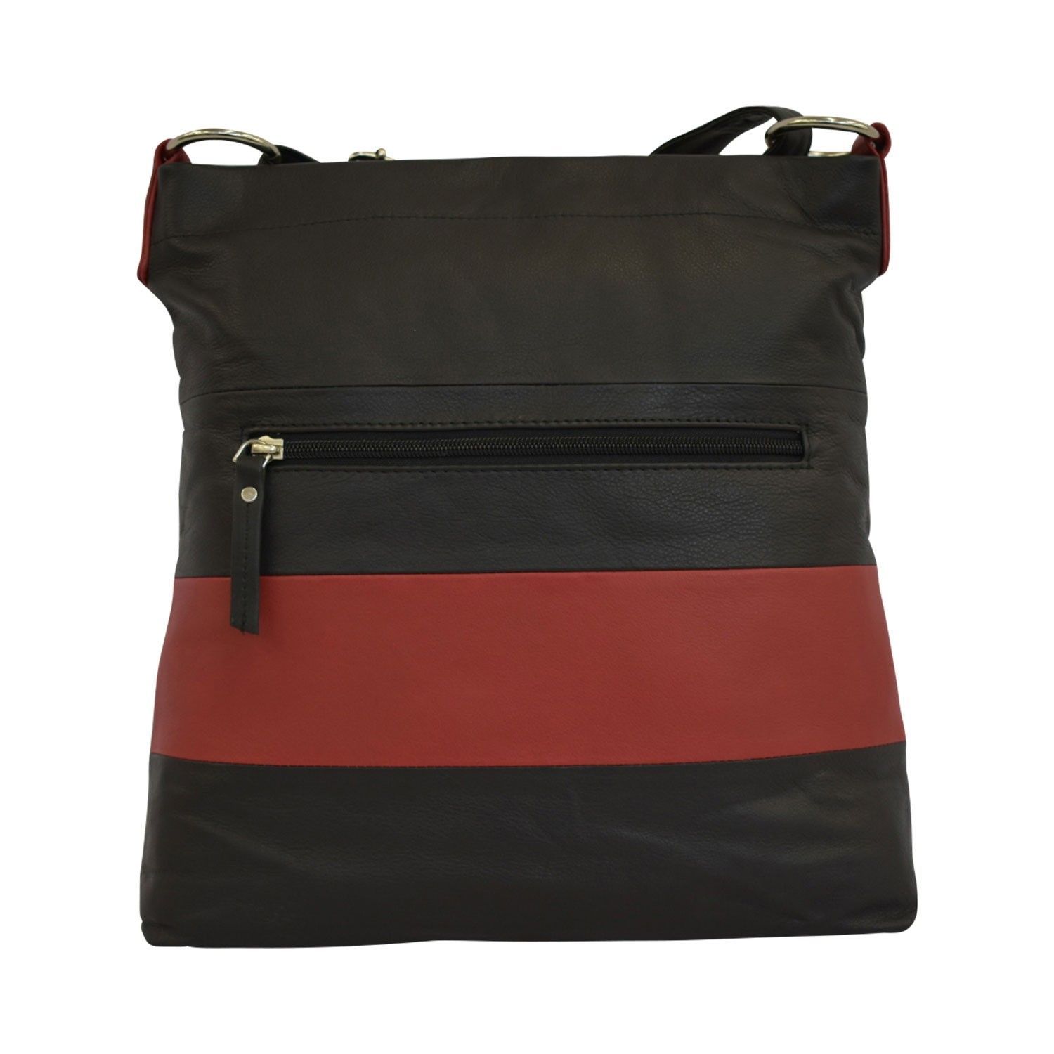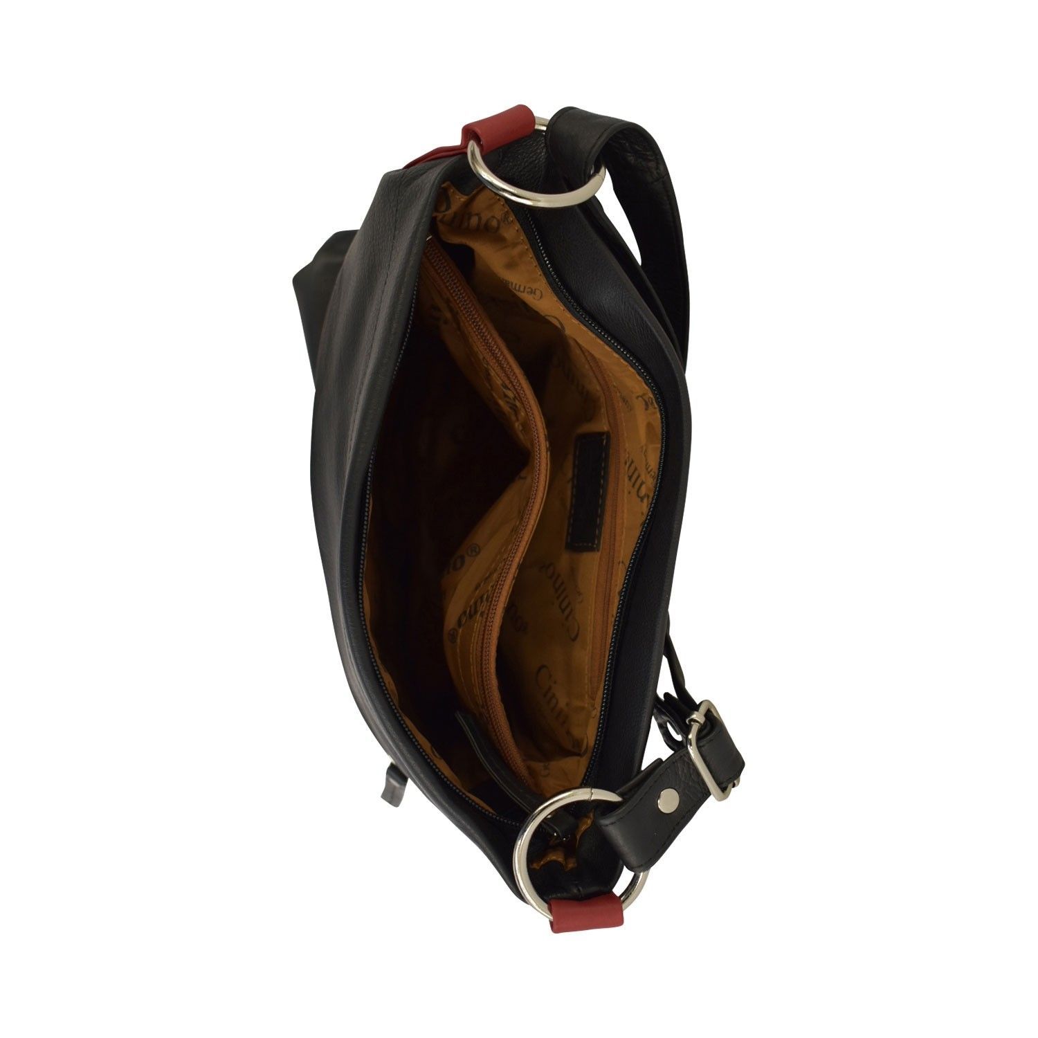 flache Cross-Over Ledertasche, verstellbarer langer Henkel, viele Fächer, schwarz rot