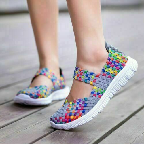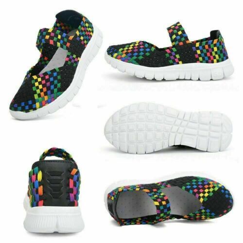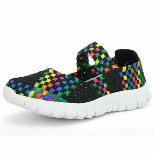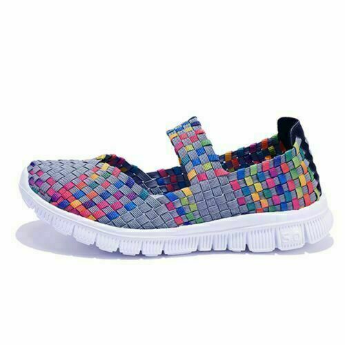 Flache Damensandalen Turnschuhe Damen Freizeit Strand gewebt elastische Schuhe Slippe