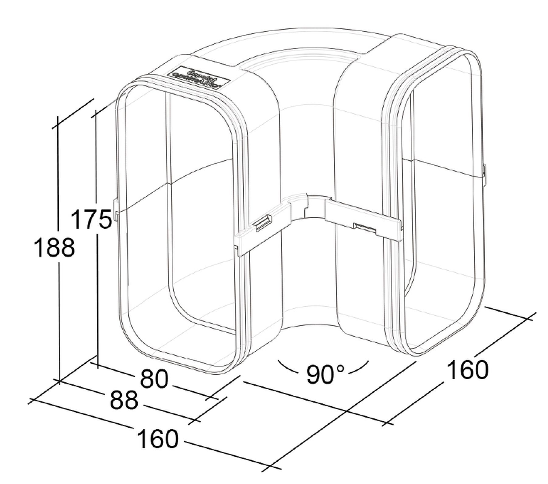 Flachkanal 175x80 mm, Rohrbogen 90° senkrecht, Muffe beidseitig