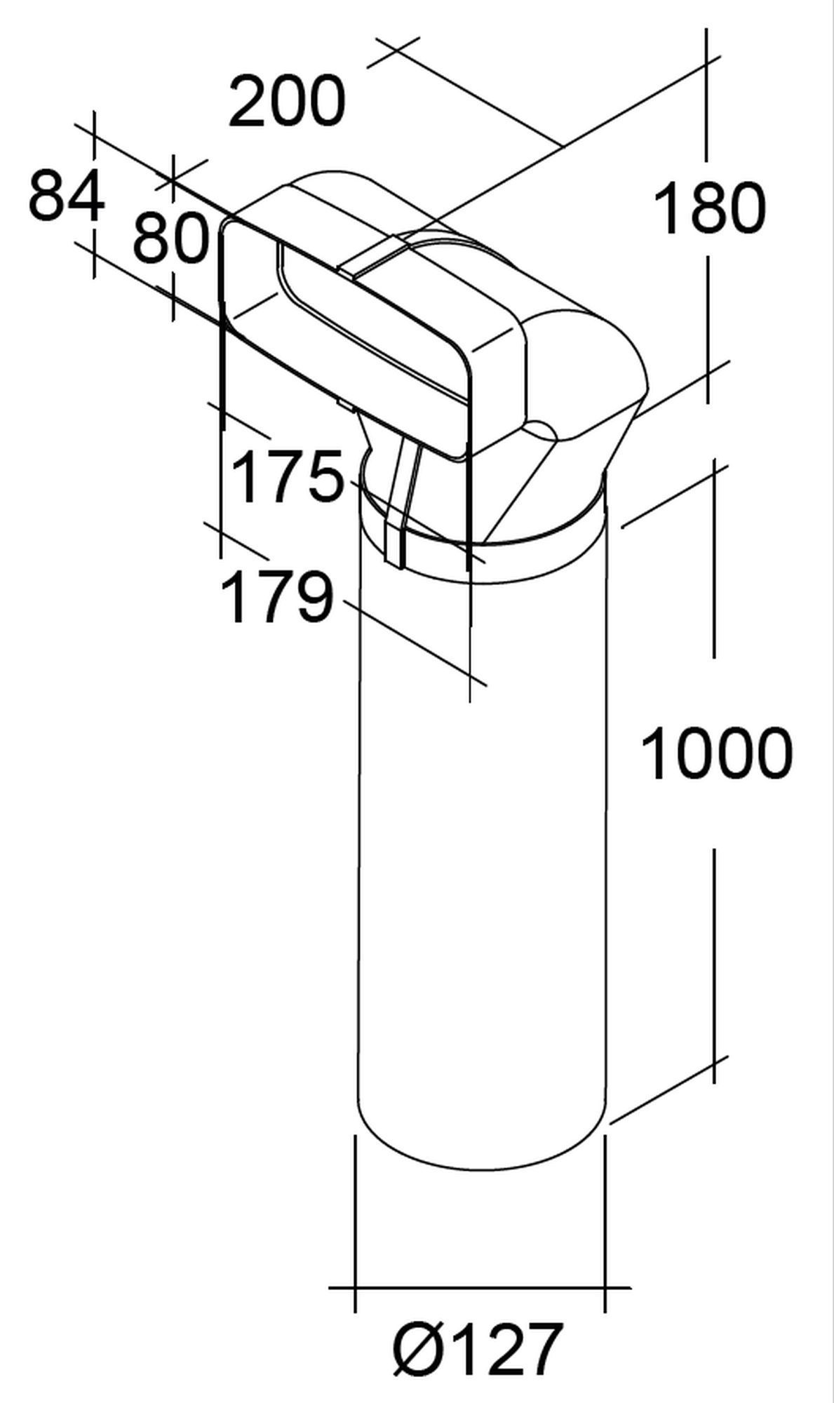 Flachkanal 175x80mm auf Ø 125mm Rundrohr 100cm Umlenkstück Abluft Dunstabzug