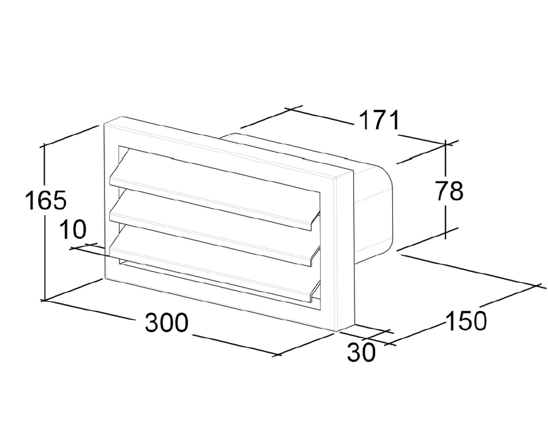 Flachkanal 175x80mm, Edelstahl Lüftungsgitter, Außengitter Küche