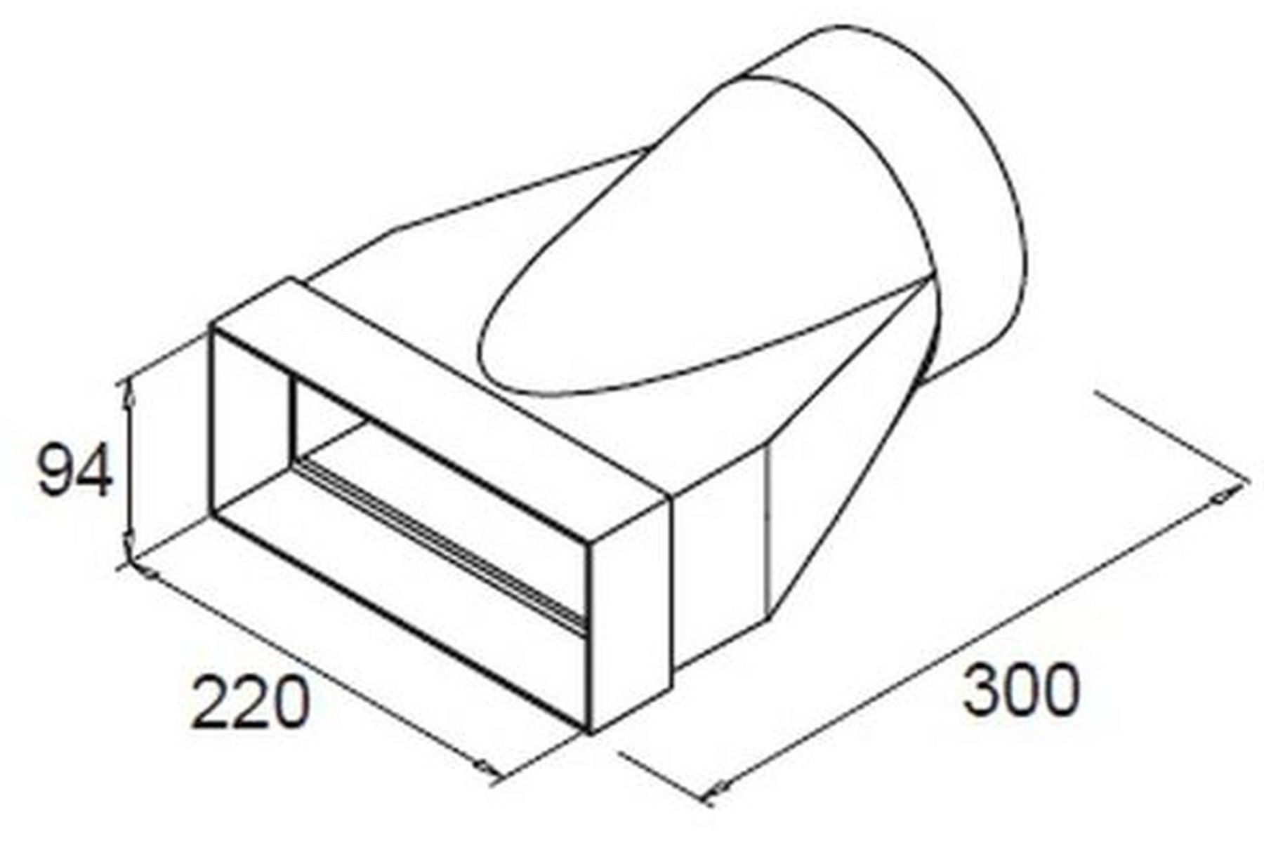 Flachkanal 220x90mm auf Ø 150mm, Umlenkstück von eckig auf rund