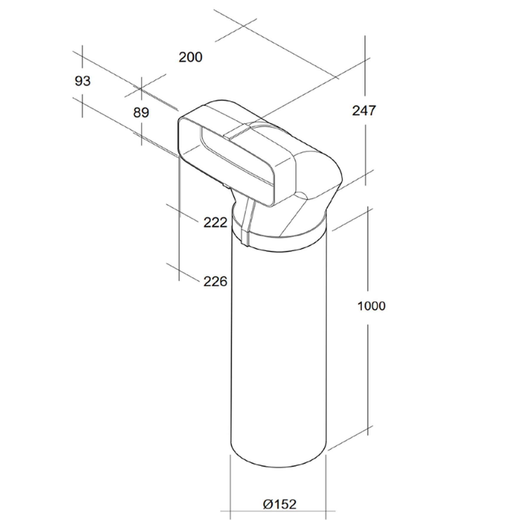• Flachkanal 222x89mm auf Ø 150mm, Umlenkstück, Rundrohr 100cm lang
