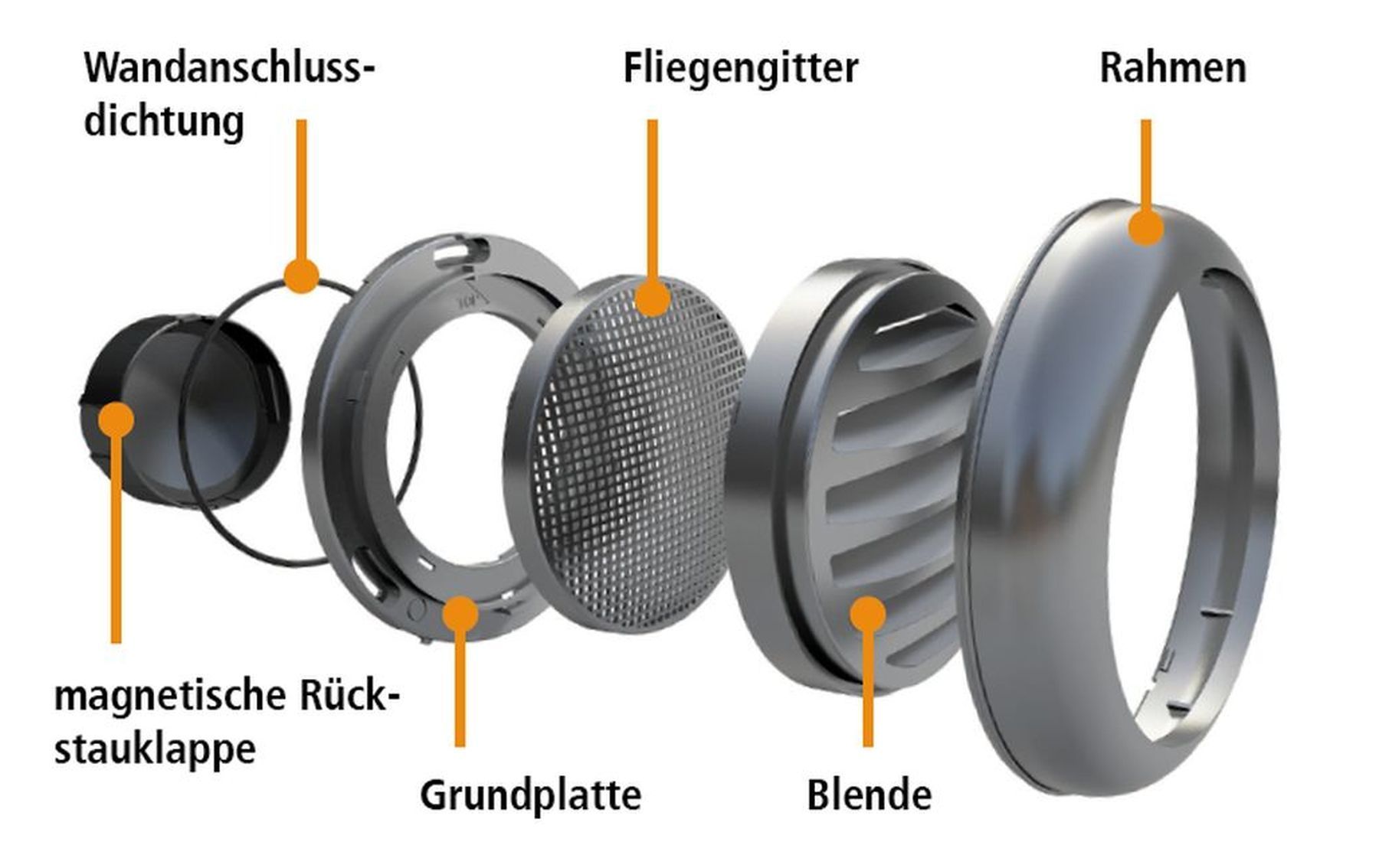 • Flachkanal 222x89mm, Teleskop-Mauerkasten 330-580mm, Abluft Küche