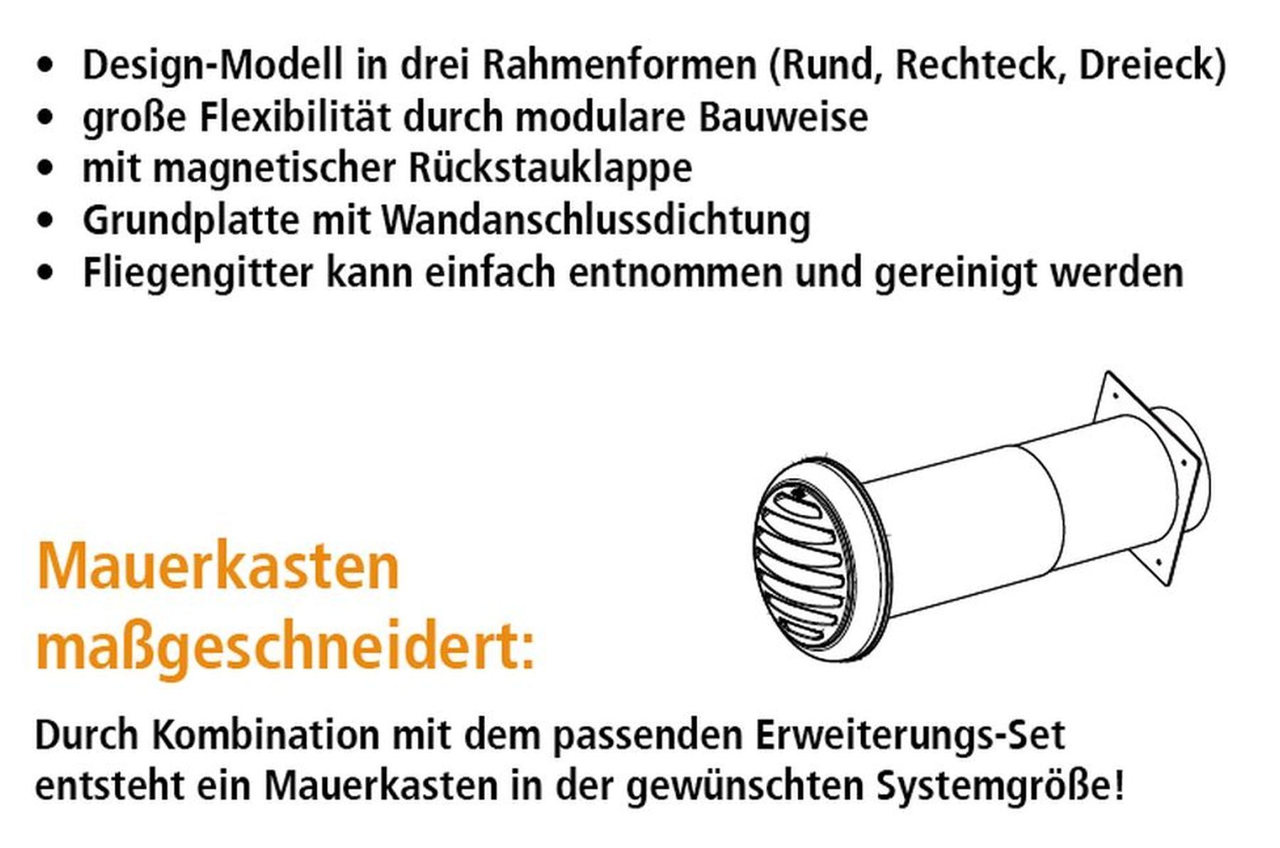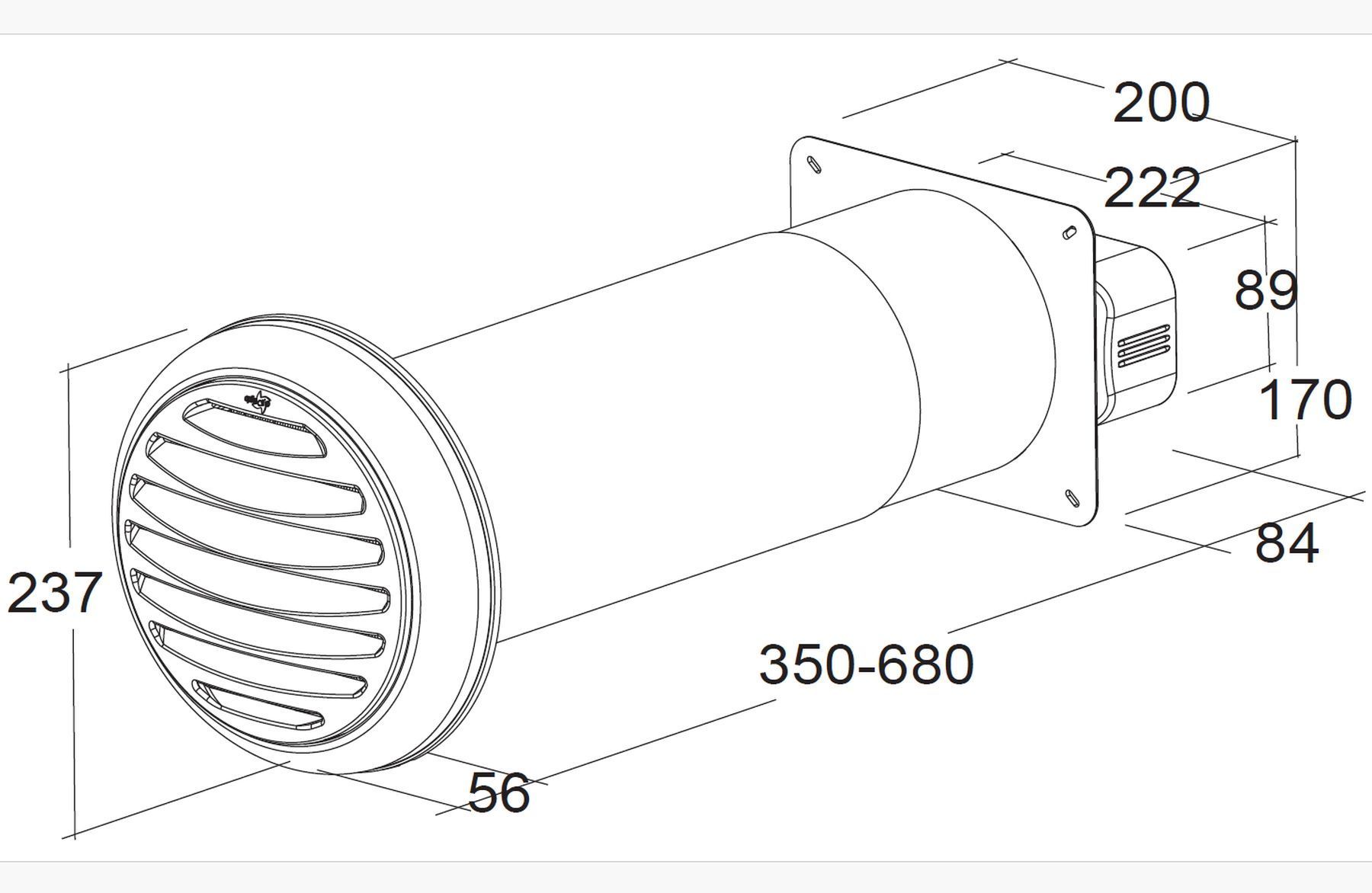 Flachkanal 222x89mm Teleskop-Mauerkasten 35-68cmm Blower-Door Dunstabzug Küche