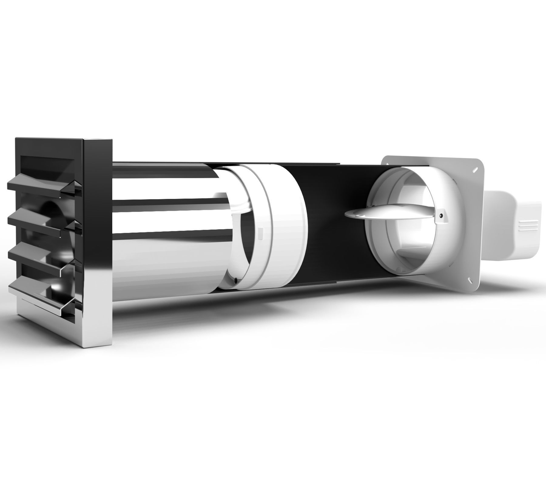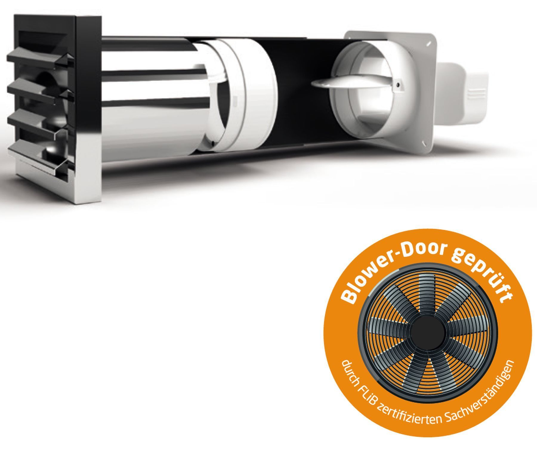 Flachkanal 222x89mm, Teleskop-Mauerkasten 350-680mm, Blower-Door