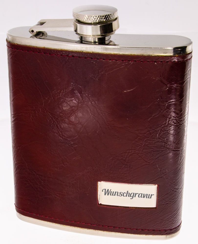 Flachmann 7 OZ Lederoptik rotbraun mit Gravur