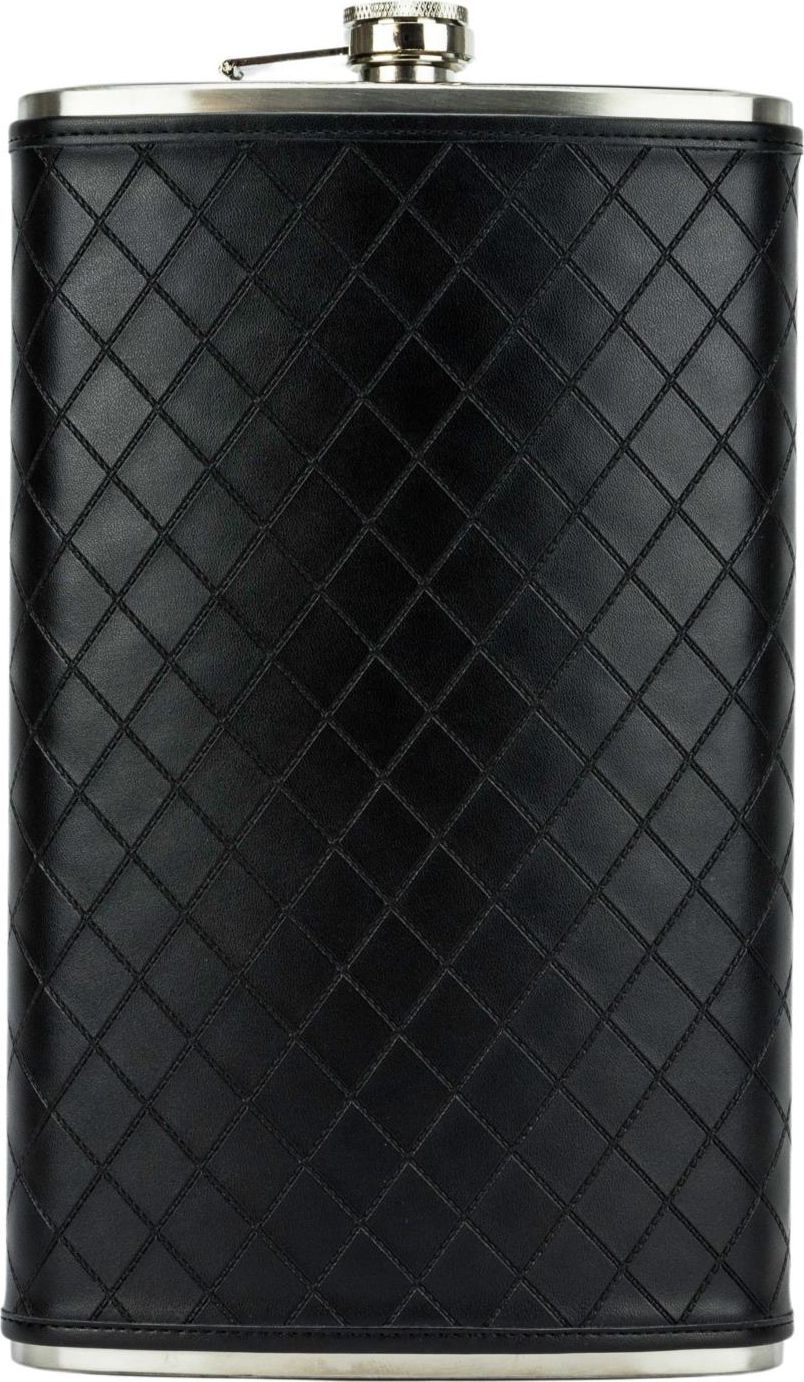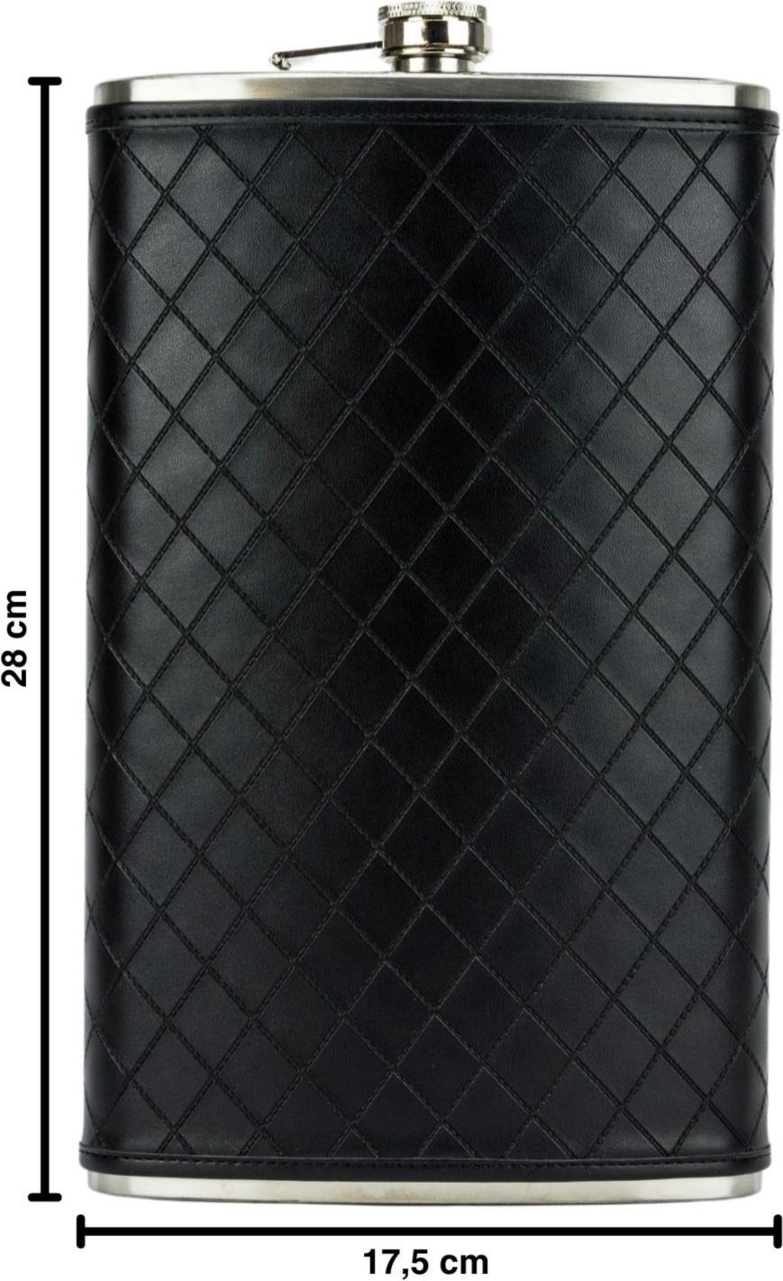 HAUSER Flachmann Edelstahl/Kunstleder, schwarz, Raute, 64oz/1920ml mit Bügel