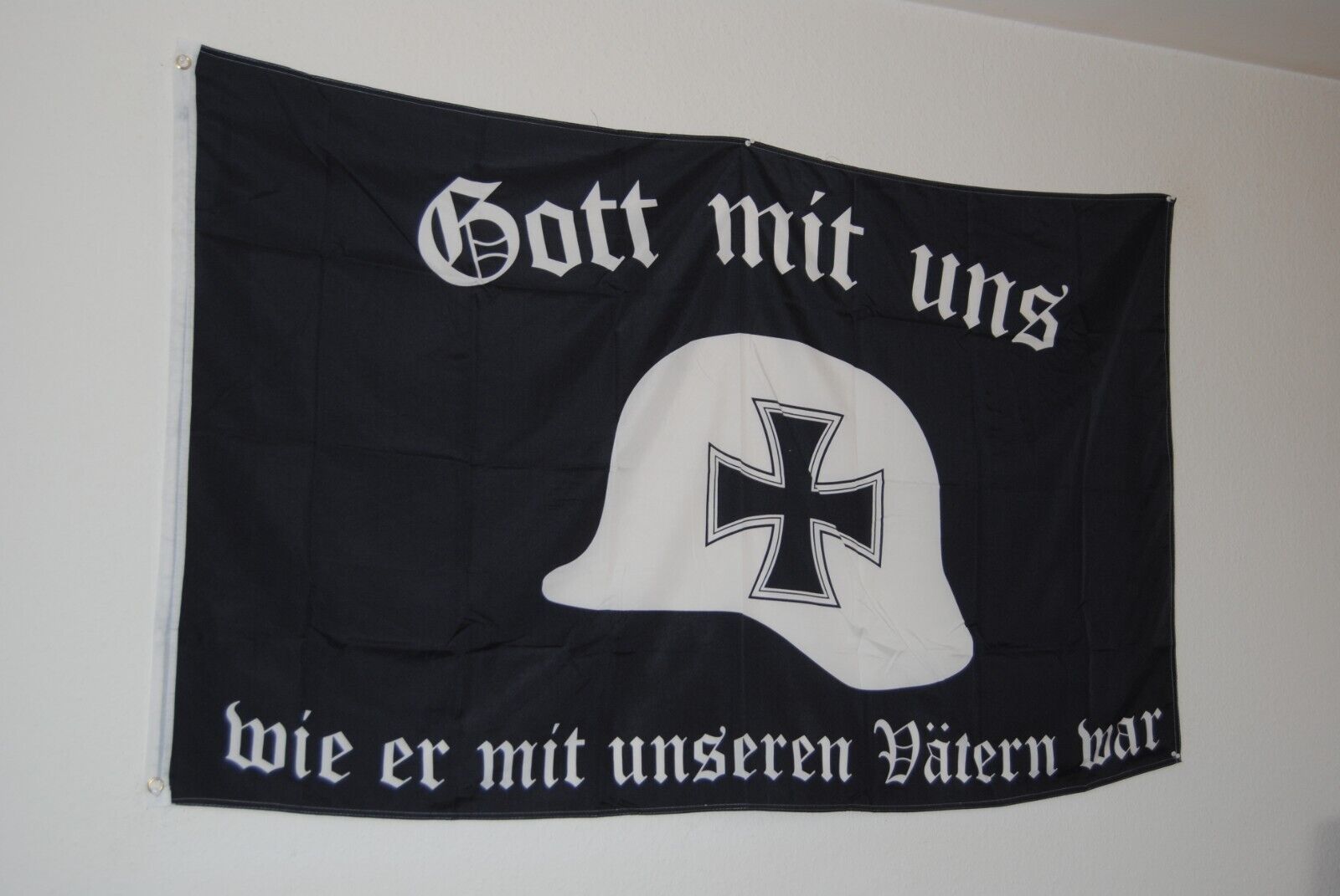 1710 FAHNE FLAGGE Gott mit Uns wie er mit unseren Vätern war Ausführung ca. 0 150cm Die Flagge ist aus reißfestem Polyester, ist an allen Seiten gesäumt und hat zur Befestigung an der Mastseite zwei Messingösen. Waschbar bei 30°C.