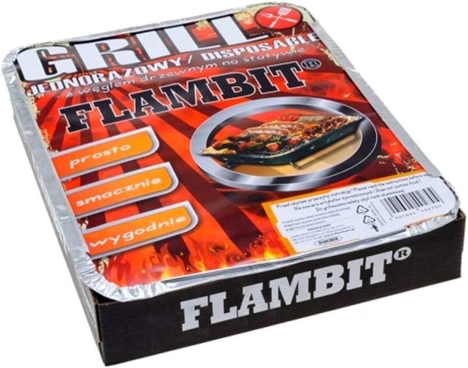 Flambit Einweggrill to go, mit Anzüghilfe, Holzkohle, Aluschale, 1er Pack