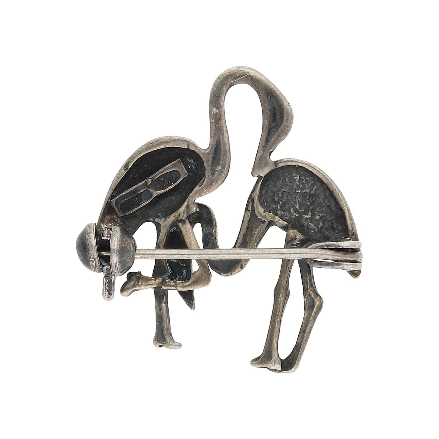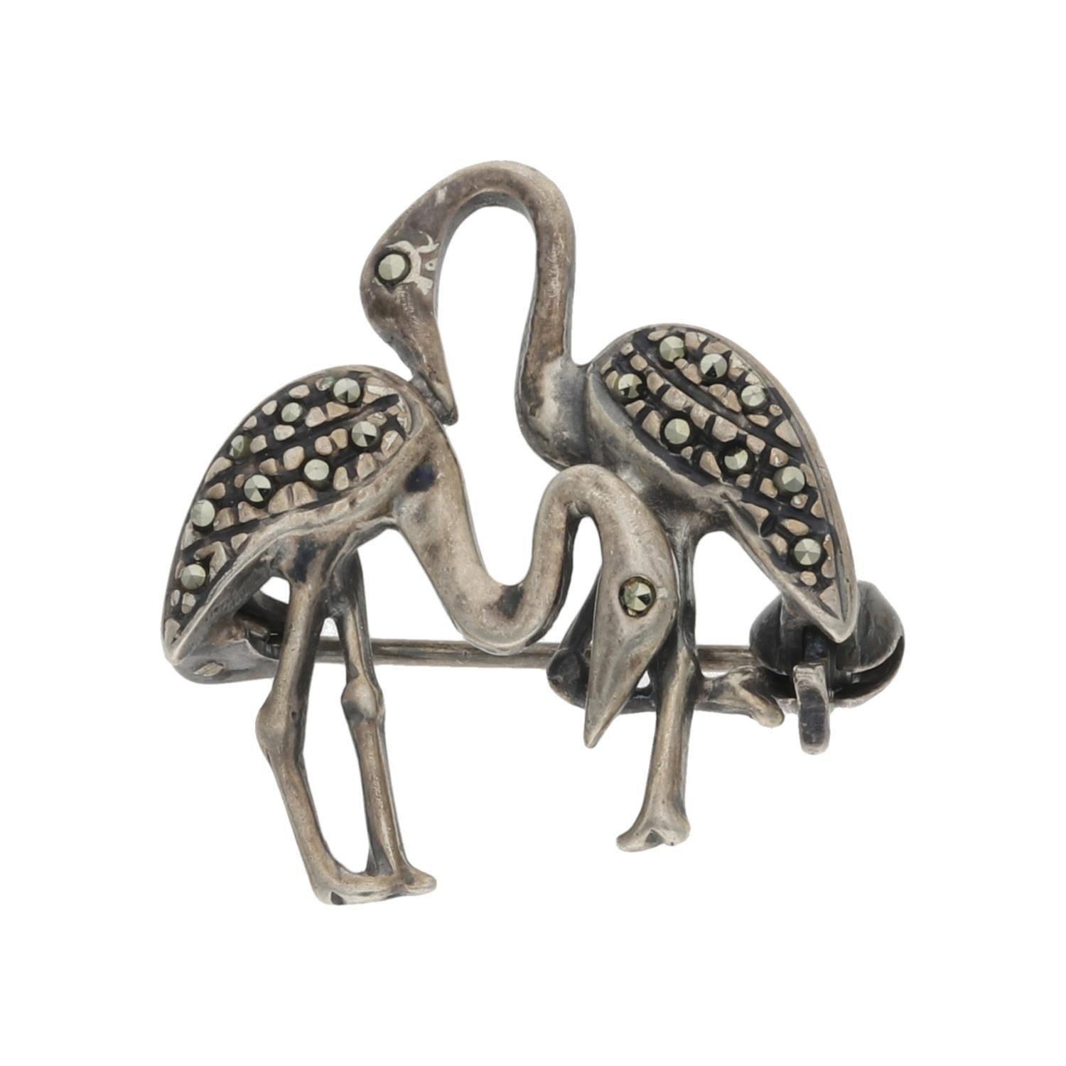 Flamingo Trachtenbrosche aus 800/000 Silber, mit Markasiten, Second Hand, getragen