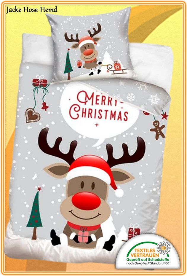 Flanell-Bettwäsche Weihnachten Christmas Rentier Schnee Baumwolle G: 135x200cm NEU
