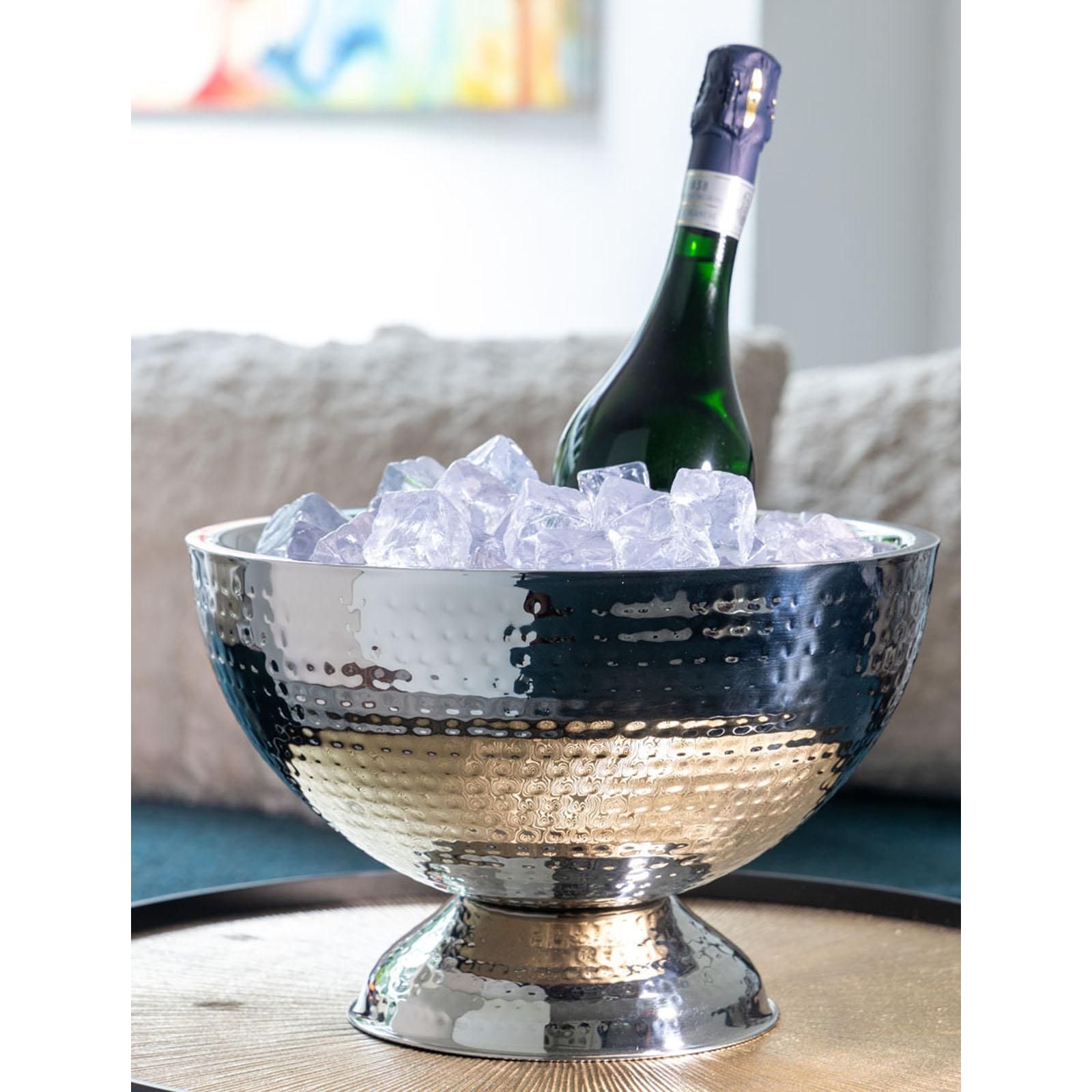 Flaschenkühler 32 cm Edelstahl gehämmert doppelwandig Sektkühler Getränkekühler