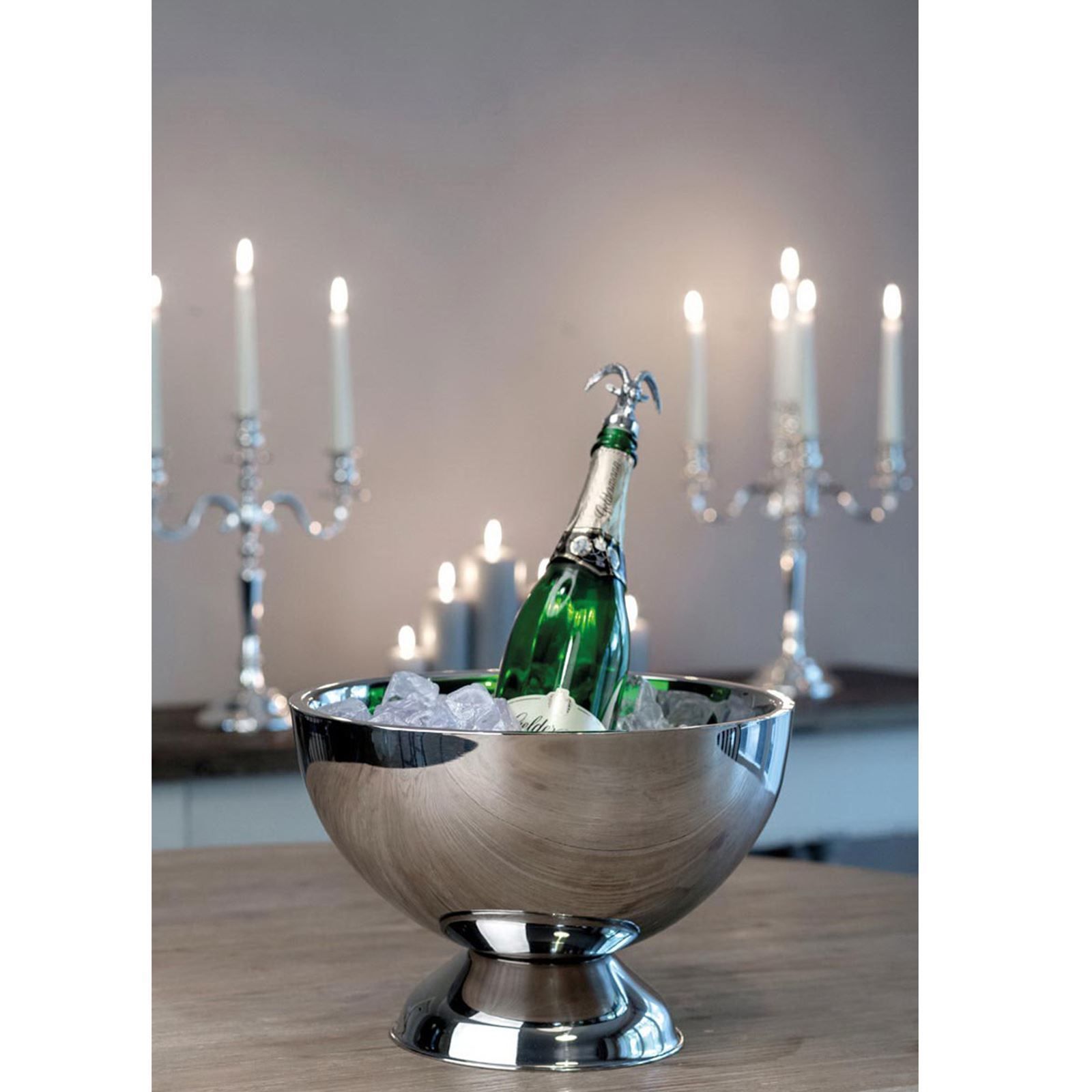 Flaschenkühler Ø32cm Edelstahl innen gehämmert Sekt- & Champagnerkühler Standfuß
