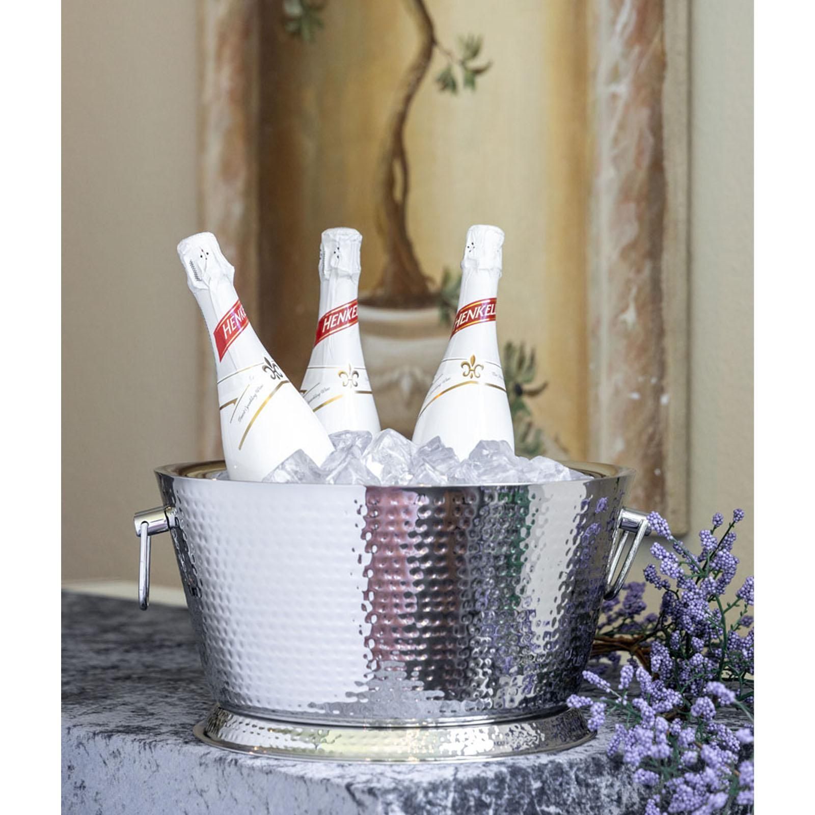Flaschenkühler 38 cm & Griffe 11 L Edelstahl gehämmert Getränkekühler Sektkühler