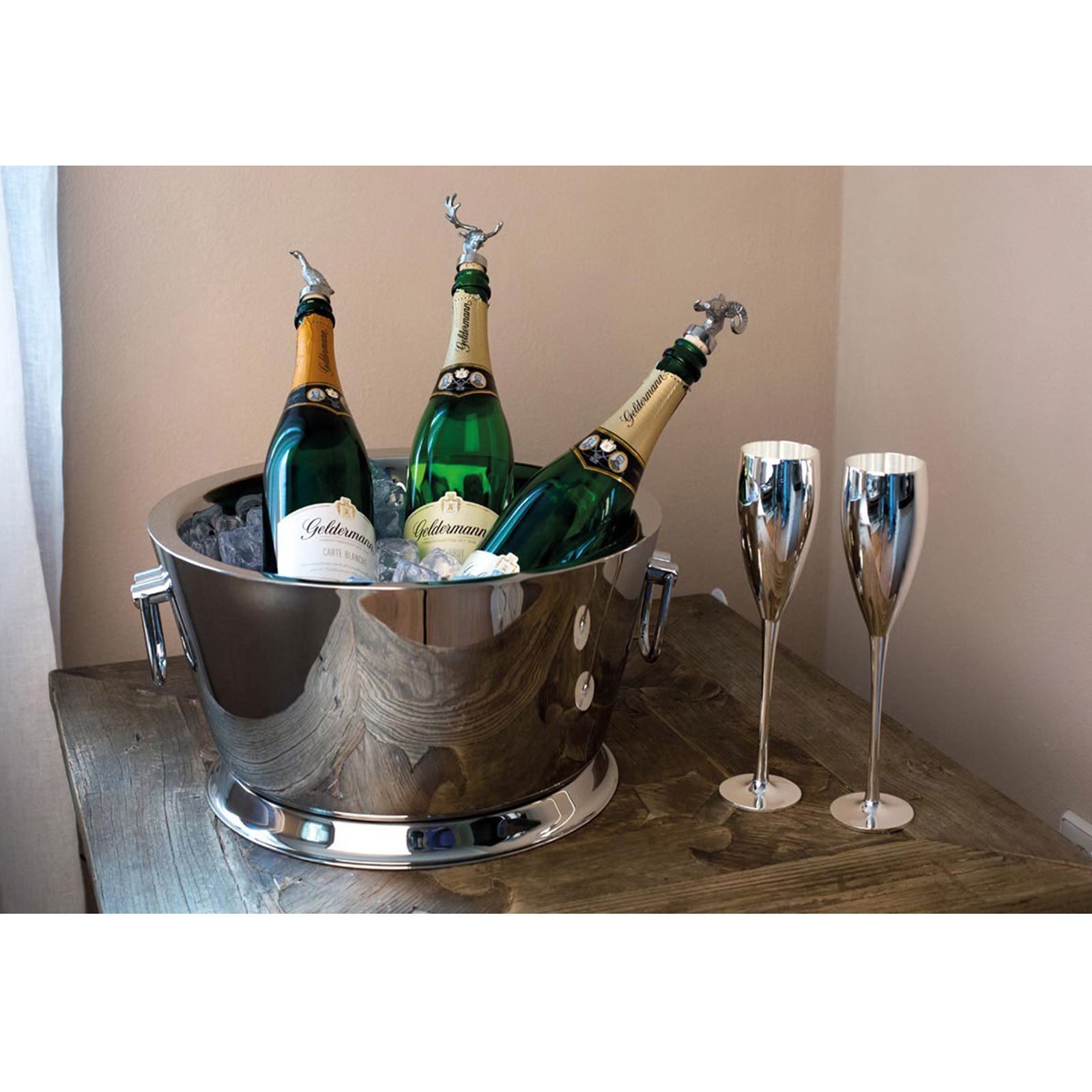 Flaschenkühler Ø38cm Edelstahl innen gehämmert 2 Griffe Sekt- & Champagnerkühler