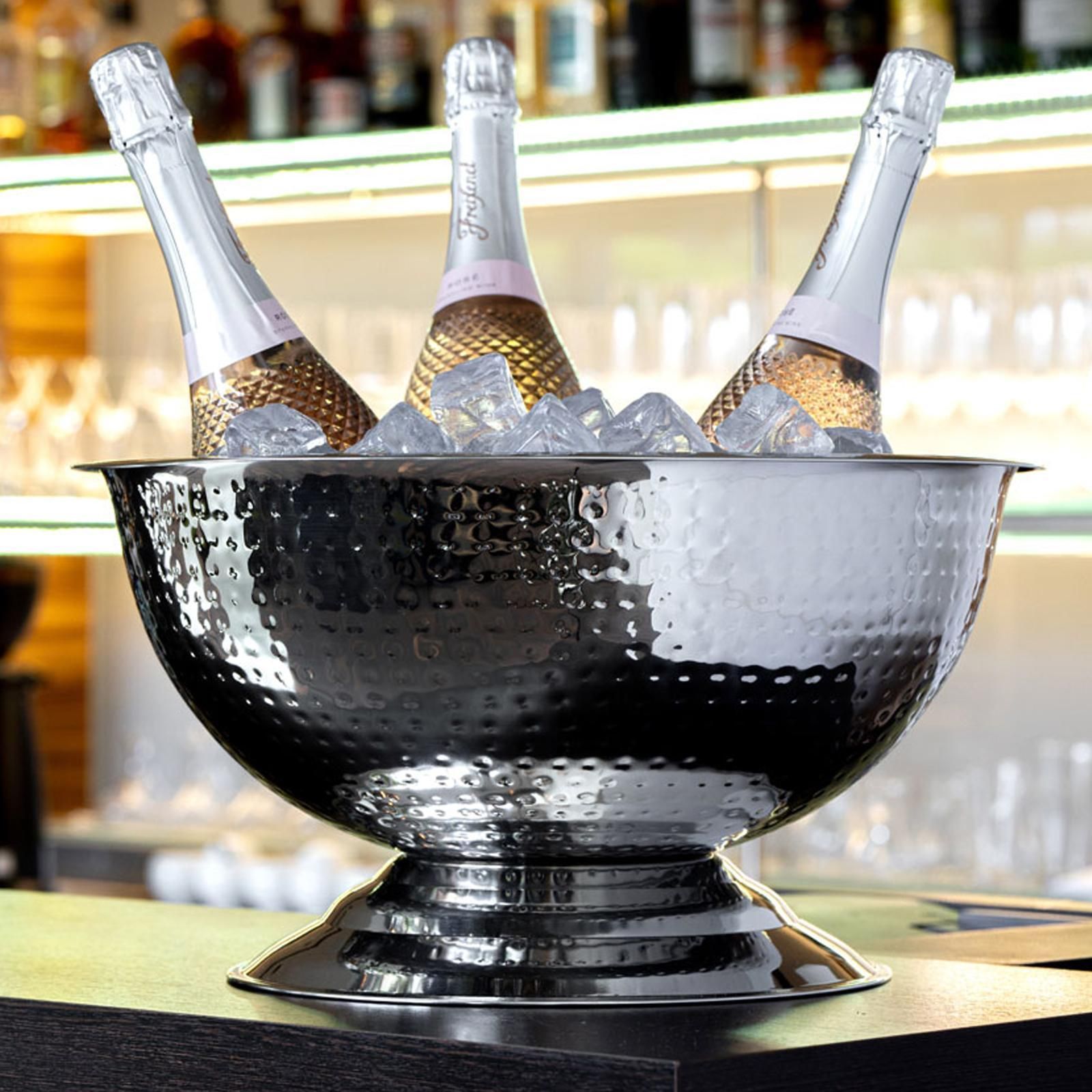 Flaschenkühler Ø 40 cm Edelstahl gehämmert Champagnerkühler Sektkühler auf Fuß