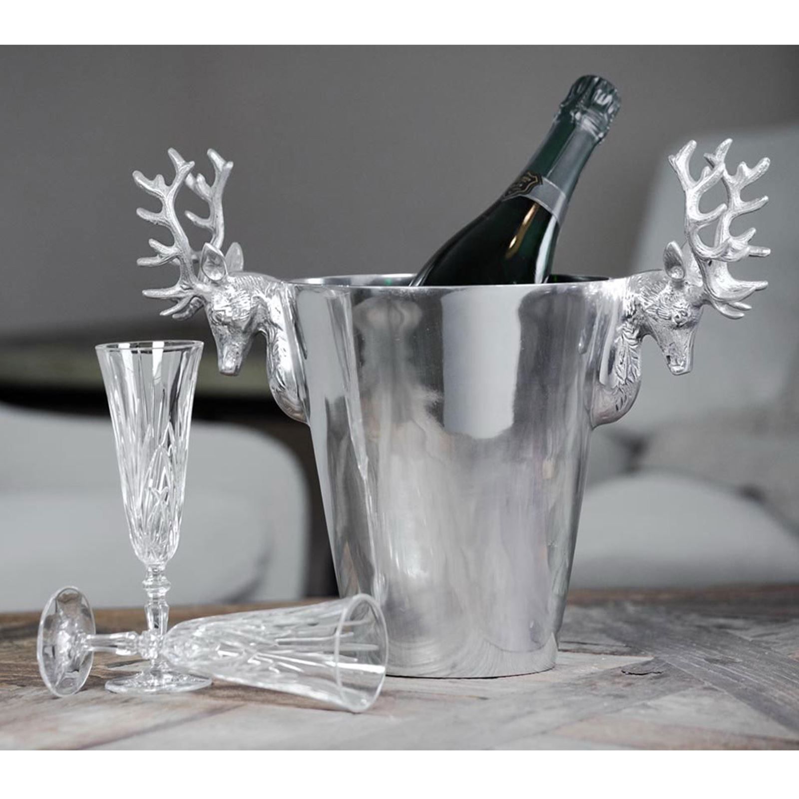 Flaschenkühler Aluminium Ø 21 cm Griffe in Hirsch-Form Champagner-& Sektkühler