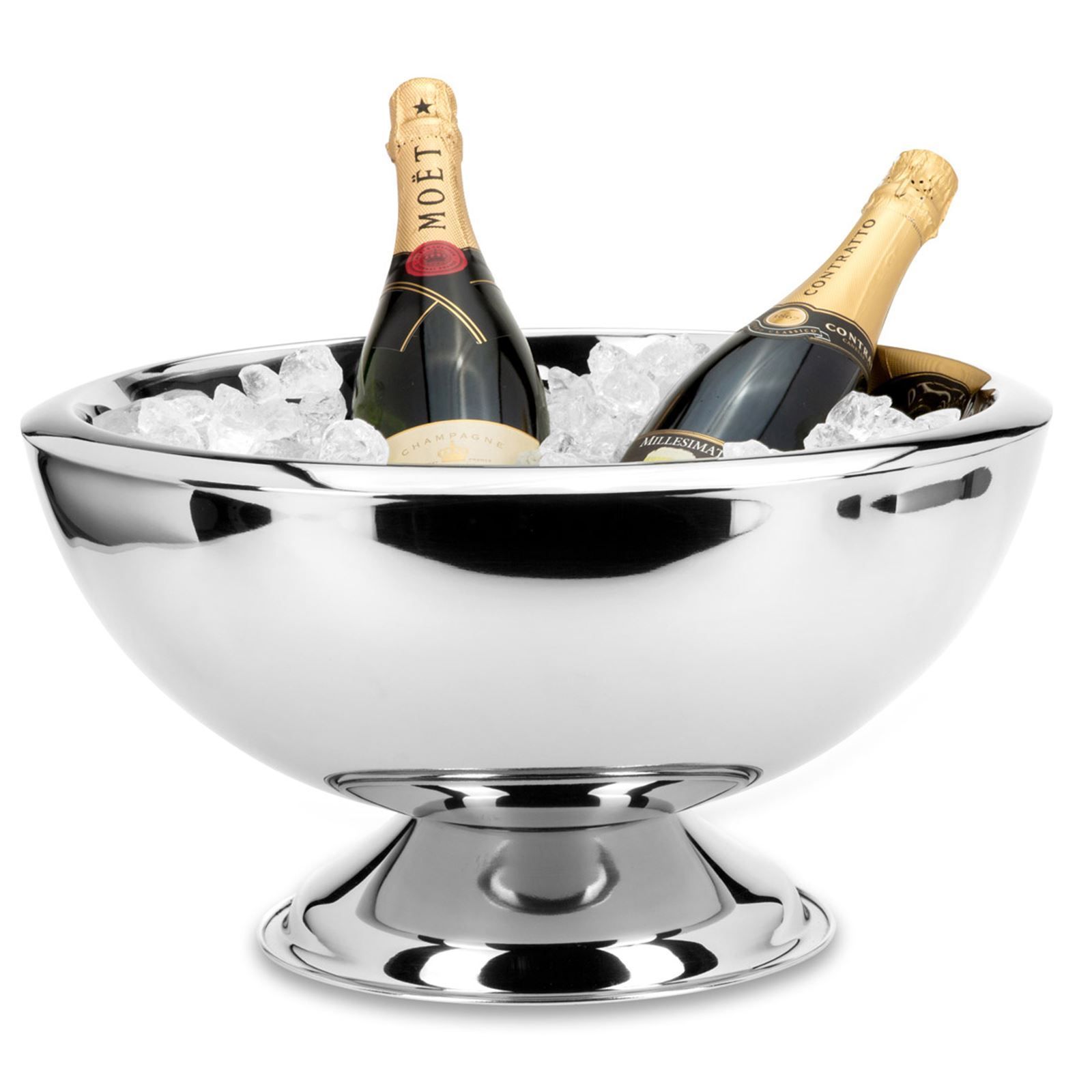 Flaschenkühler Edelstahl Ø 43 cm Champagnerschale gehämmert Sektschale Standfuß