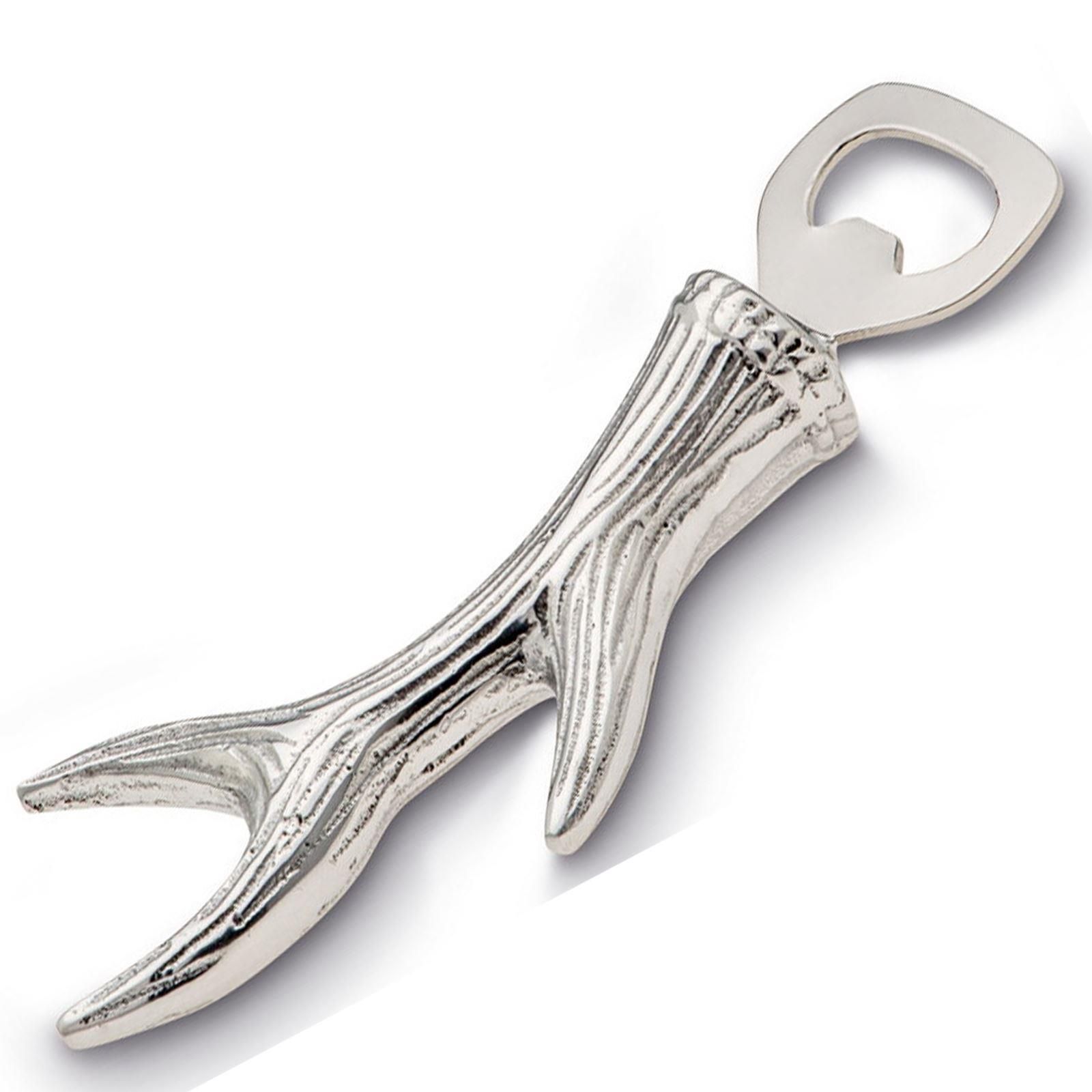 Flaschenöffner 17 cm Aluminium Griff in Geweih-Form Kapselheber Kronkorkenöffner