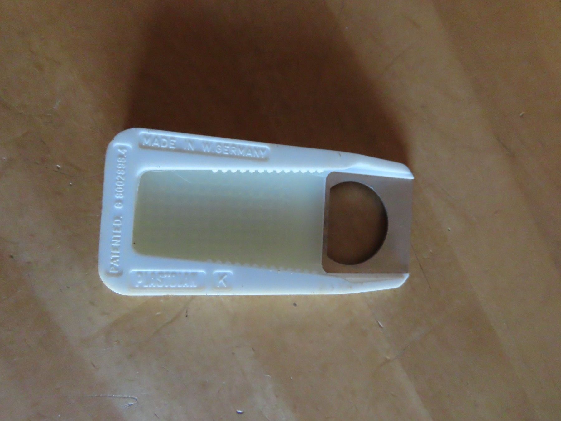 Maße : ca. 9,3 cm x ca. 1,2 hoch x ca. 4 cm ----immer an der breitesten Stelle gemessen Material: Metall magnetisch und Kunststoff Plastolan ist leicht verschmutzt verstaubt, Verfärbungen Made in W.Germany