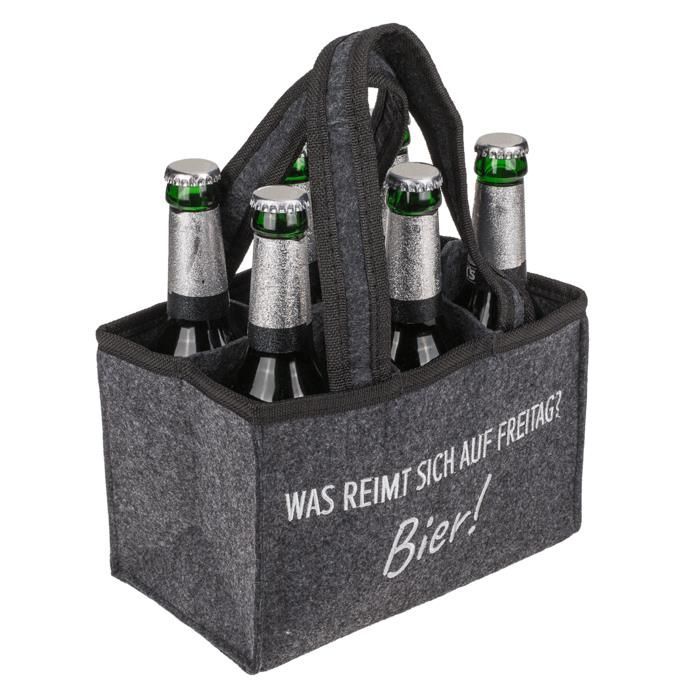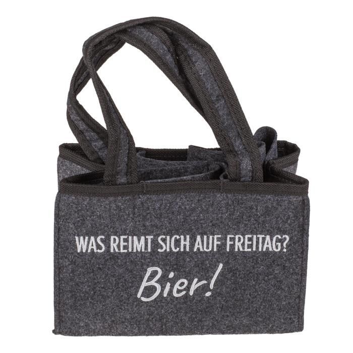 Out of the blue Flaschentasche aus Filz mit 6 Fächern "Was reimt sich auf Freitag? Bier!"