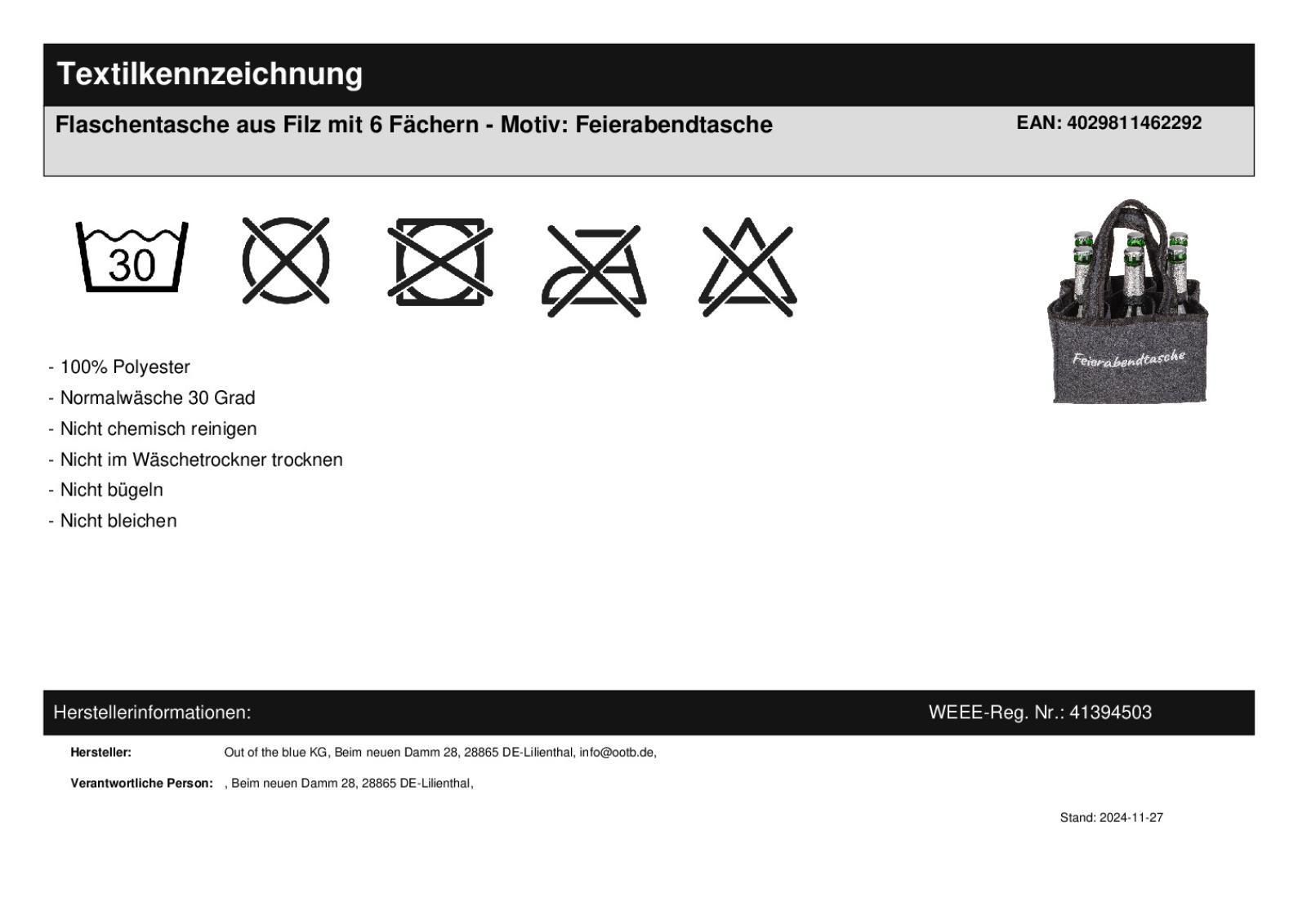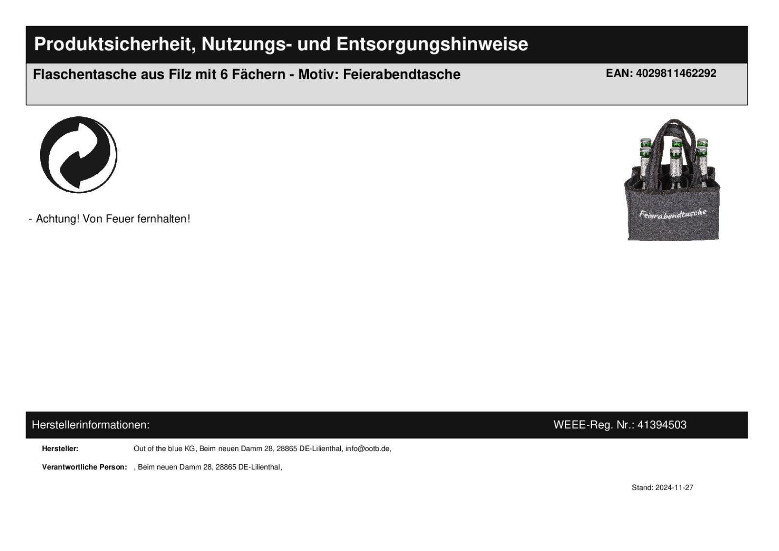 Out of the Blue Flaschentasche Flaschenöffner Flaschenträger Kronkorken Pistole Feierabendtasche