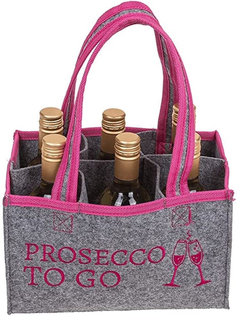 Flaschentasche Prosecco to go Flaschenträger aus Filz für 6 Flaschen Handtasche