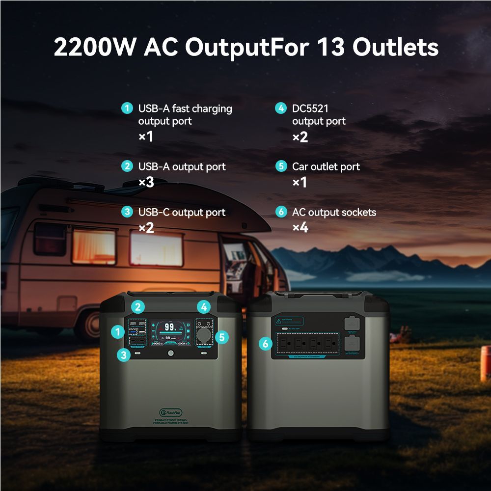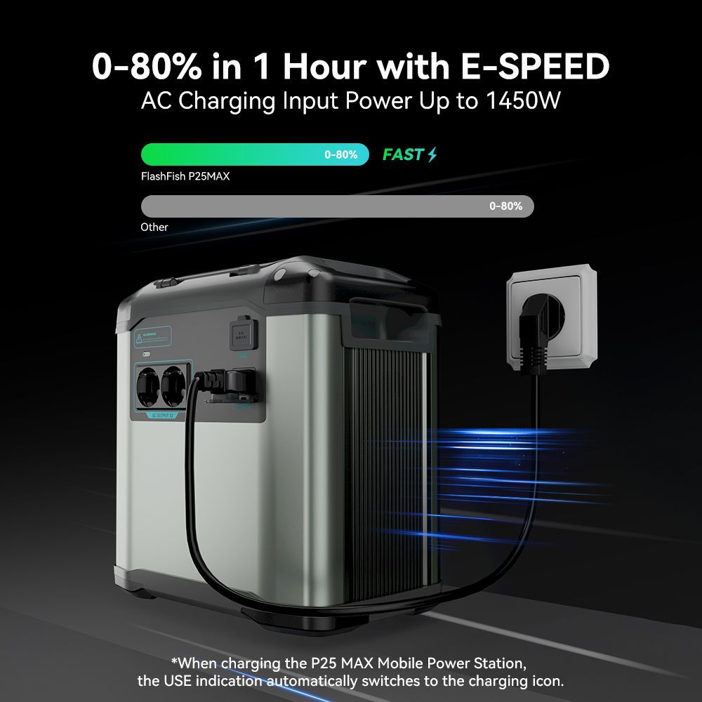 Flashfish P25 Max mit LED-Licht, 2200 W, 1935 Wh, enorme Kapazitaet