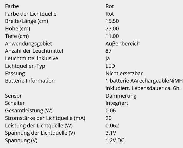 Star Trading Flat Neon LED Solarstab "Linny" Herz rot 15,5x77cm Solarleuchte 482-44