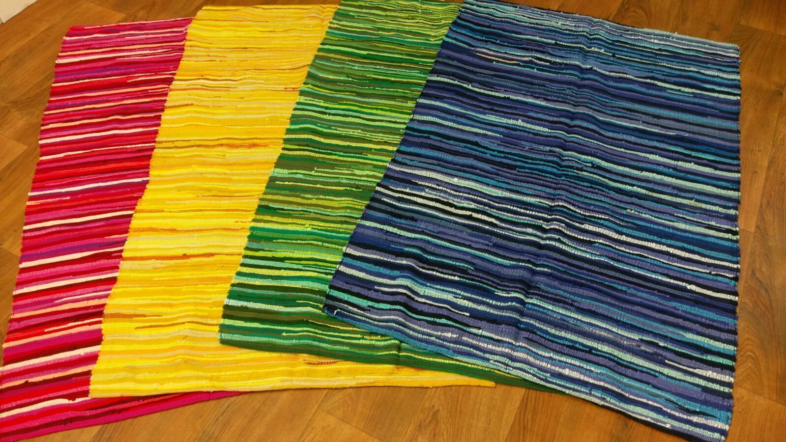 Handgewebter Fleckerl Salzburg. Sie bekommen hier ein strapazierfähiges und pflegeleichtes Produkt für Ihr Wohnambiente. Produktdeails: Motiv: Salzburg Farbe: rot, gelb, grün, blau (siehe Foto von links nach rechts) Echte Handarbeit Material: 100% Baumwolle Gesamtgewicht: ca. 1.300 g m2 In verschied