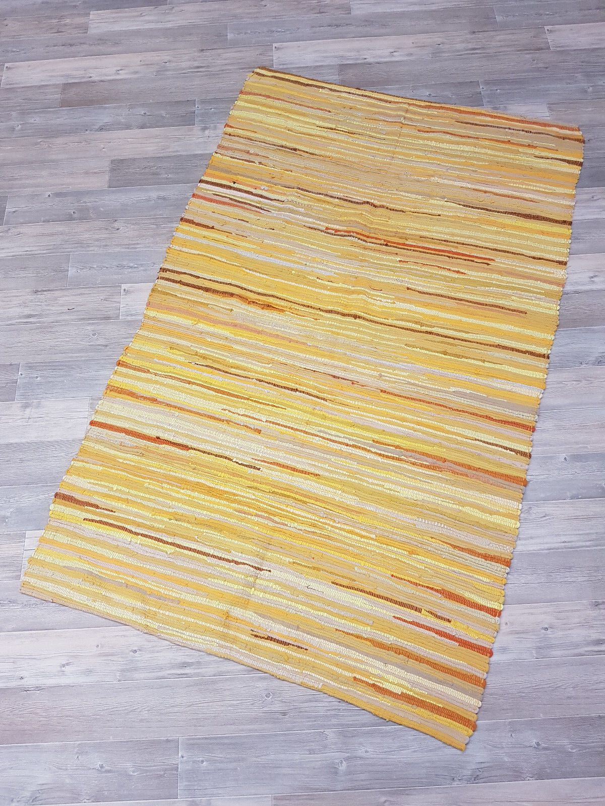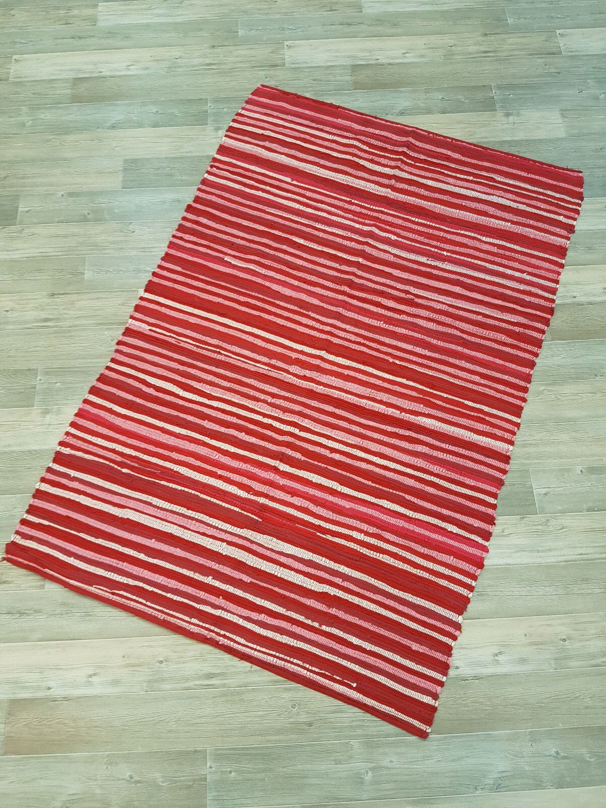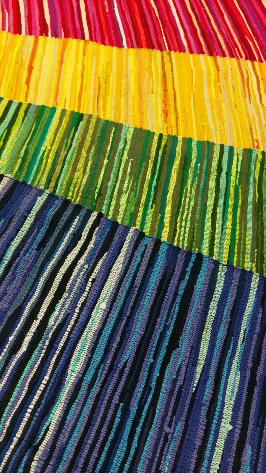 Fleckerl Handweb Teppich Salzburg rot, grün, gelb, blau ohne Fransen 120x180cm