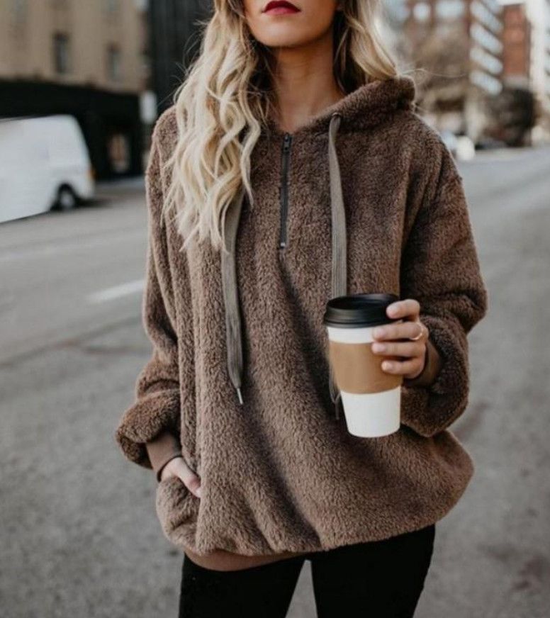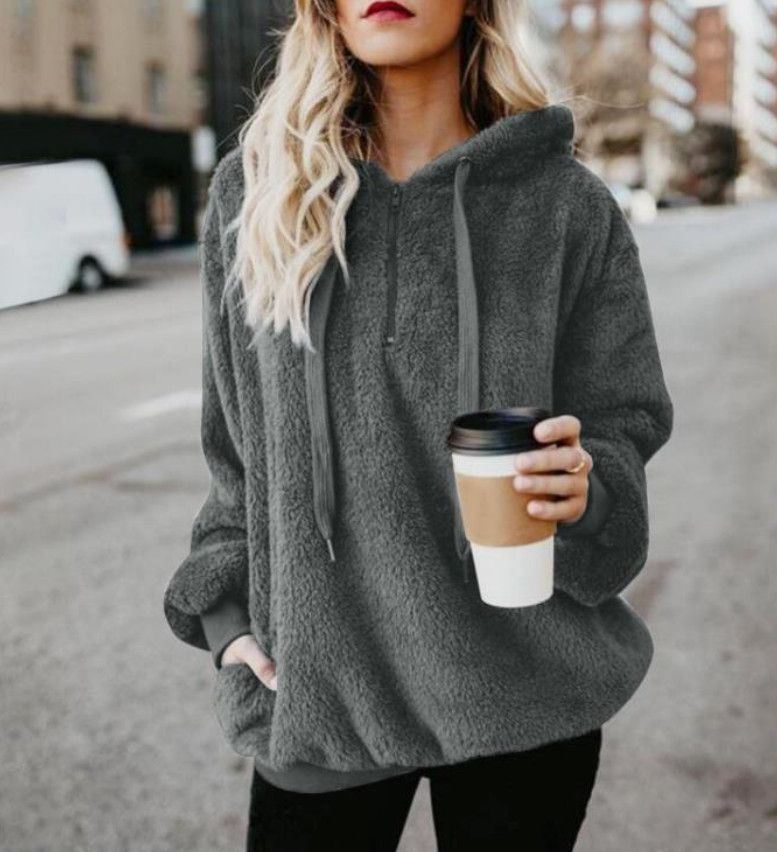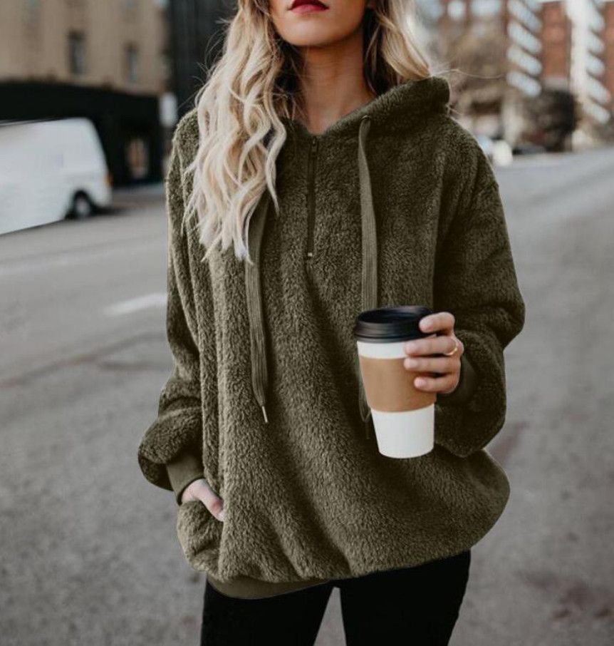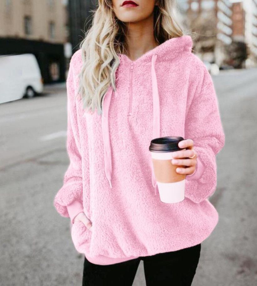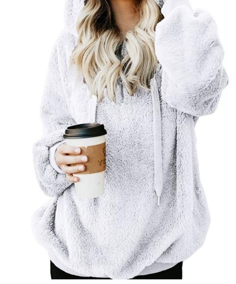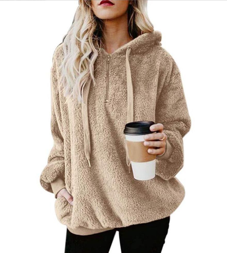 Fleece Teddy Jacke Plusch Hoodie Pulli Winter Mantel Damen Kapuzenjacke Pullover