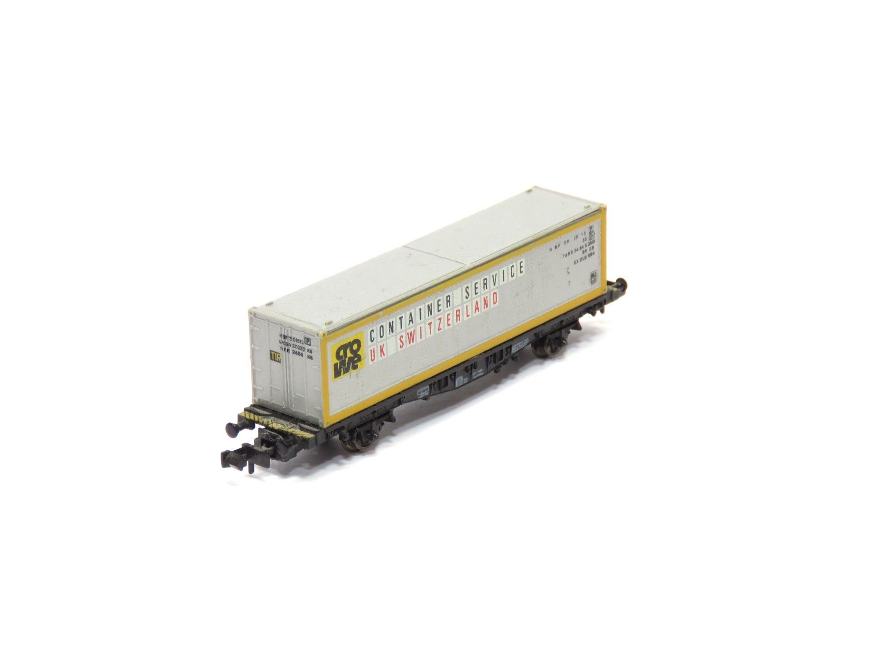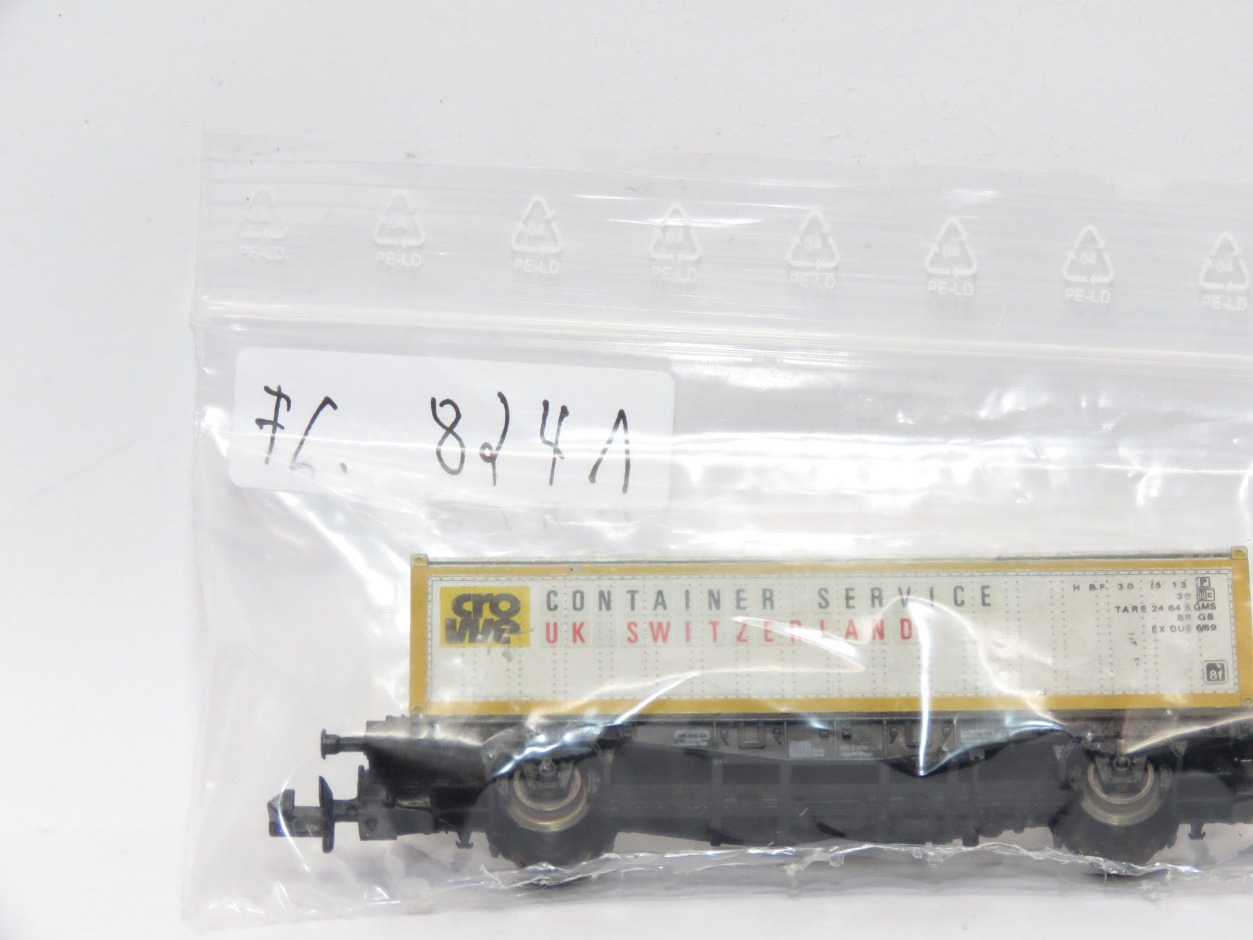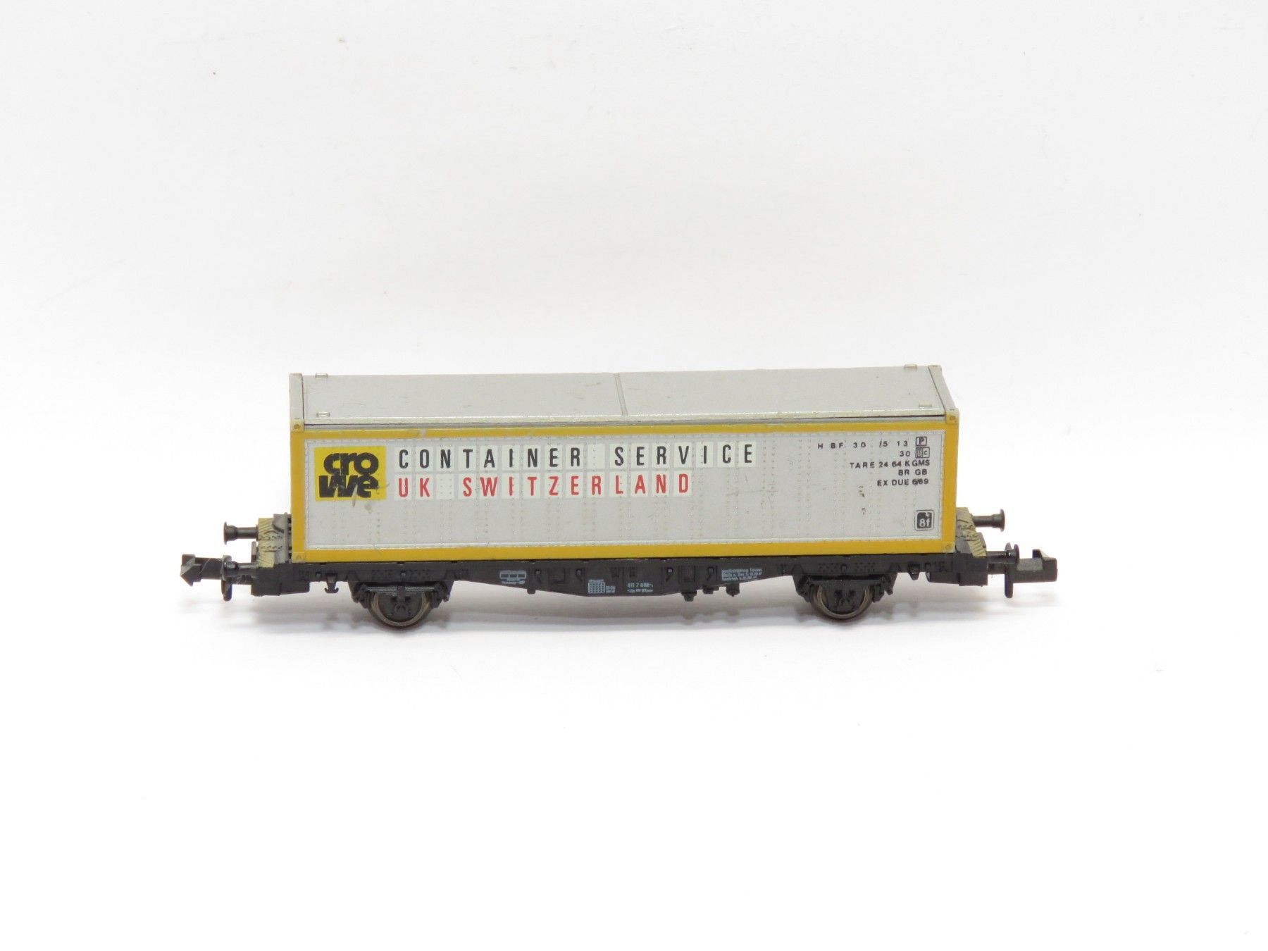 Hersteller: Fleischmann Artikelnummer: 8241 Artikel: Containertragwagen NEM-Schacht: Ja Anmerkung: Der Container ist abnehmbar Maßstab: 1:160 Originalverpackung: Nein Die Fotos sind Teil der Artikelbeschreibung. Der Markenname ist rechtlich geschützt und wird lediglich genannt, weil er Bestandteil d