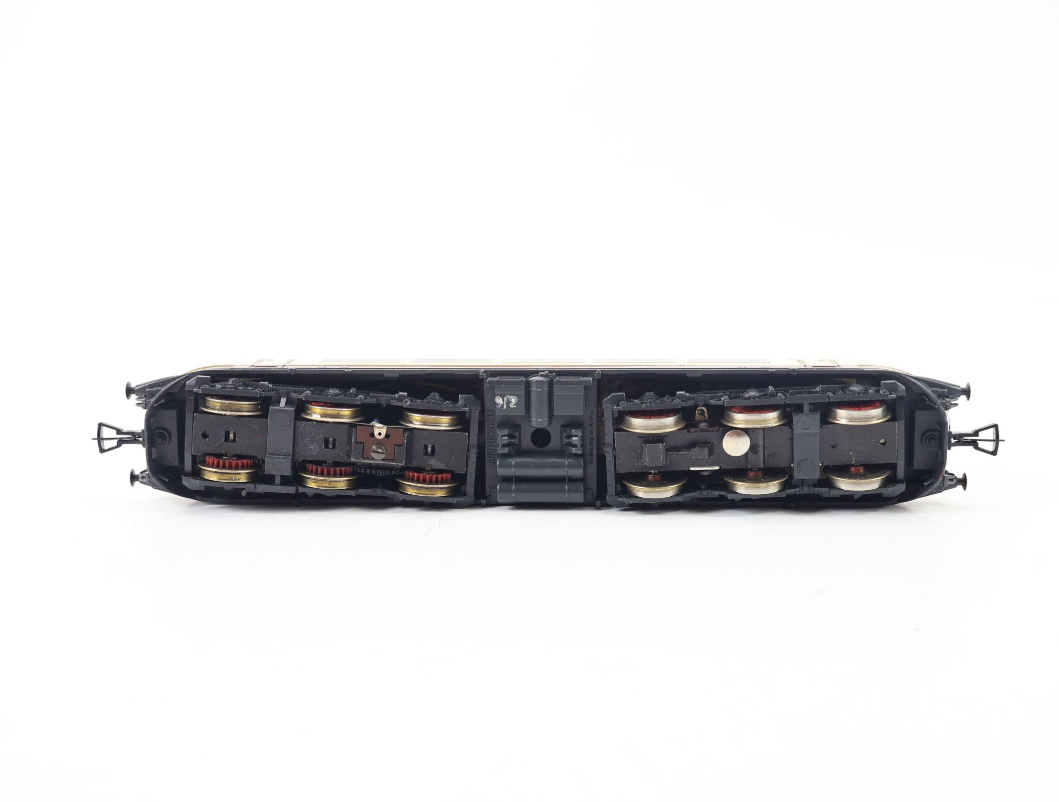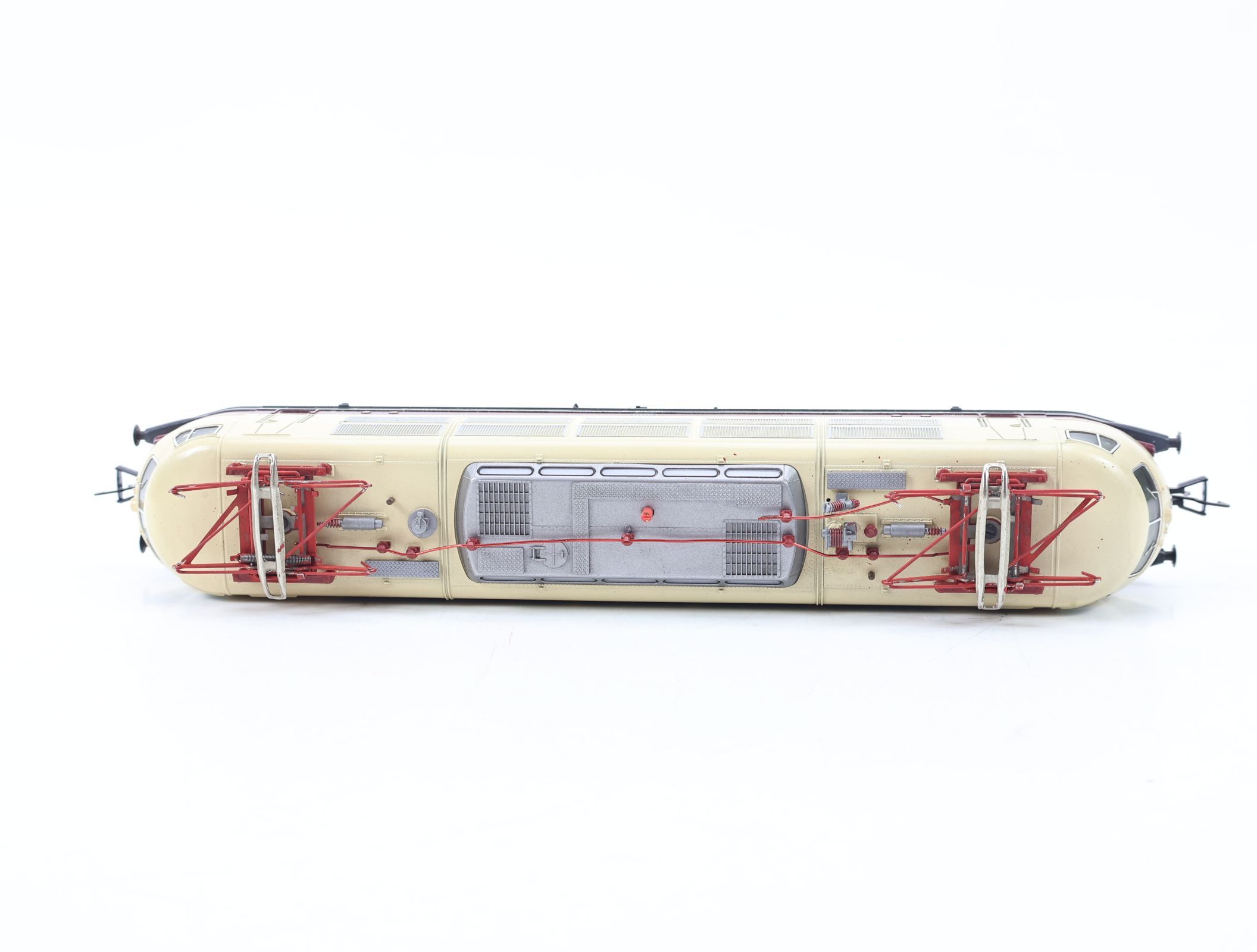 Zustand condition 2 - Gebraucht - Sehr gut Mängel defects 2 kleine Gehäuseschrauben fehlen Merkmale features Lokeigenschaften: Kontrollgerät: • Märklin 6711 Ausstattung: • Innenbeleuchtung • Inkl. Zurüstteile (nicht geprüft) Laufeigenschaften: Laufruhig Beleuchtung: 3-Licht-Spitzensig