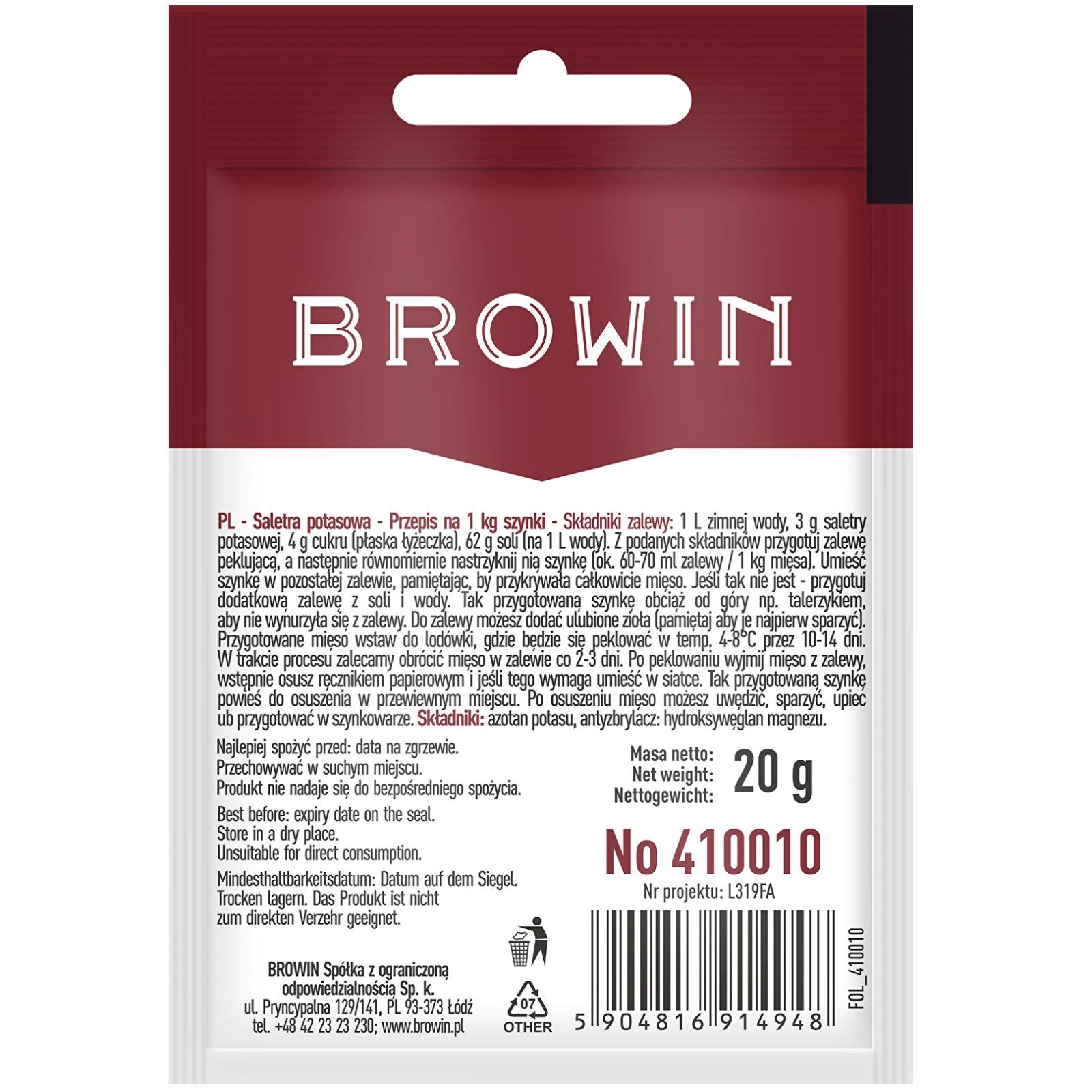 Fleischsalz 20g Pökel Pökeln für 6kg Fleisch Pökelsalz