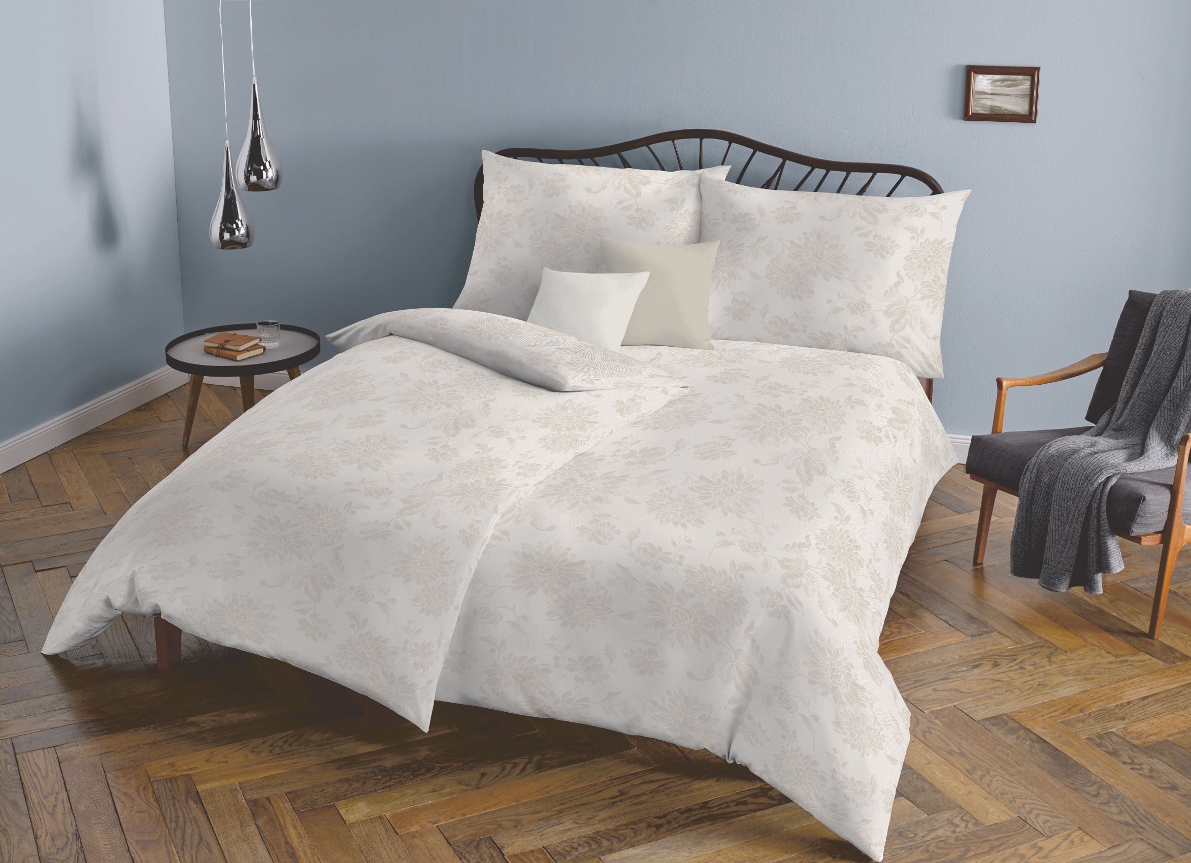 Fleuresse Lech Edelflanell Bettwäsche 155x220 Blumen beige mandel 604109-07