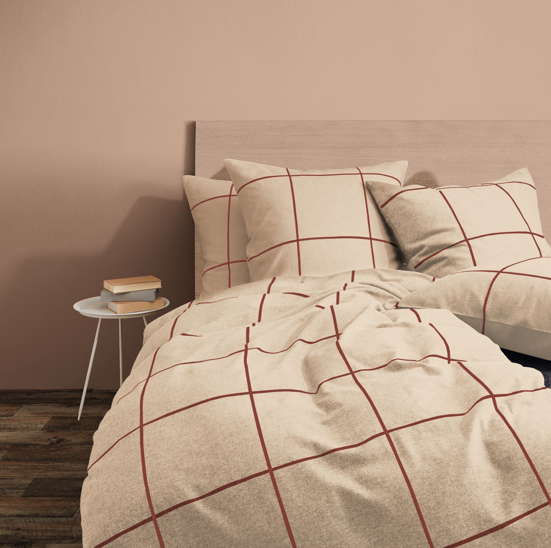 Fleuresse Fleuresse Lech Edelflanell Bettwäsche 155x220 Karo natur rot 604311-04